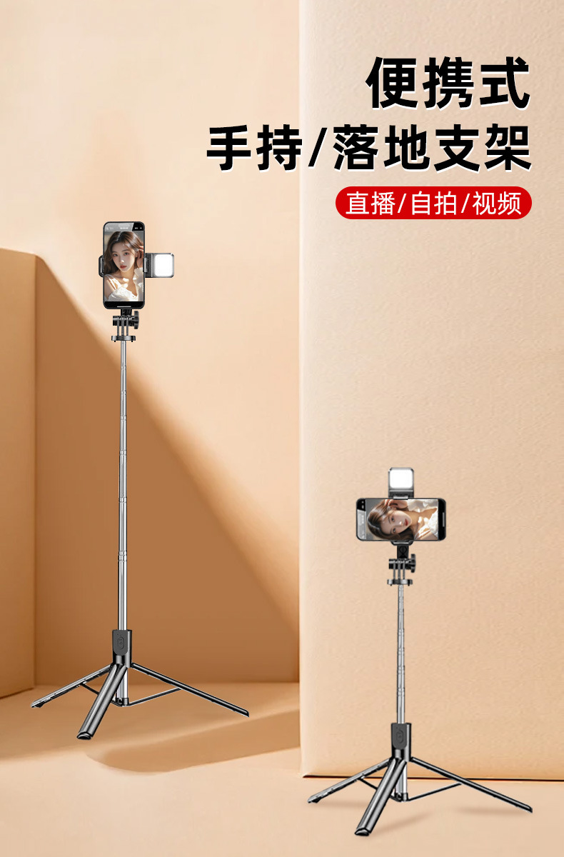 휴대폰 라이브 사진 셀카 삼각대 휴대용 사진 무료 개폐식 확장 휴대용 올인원 셀카봉