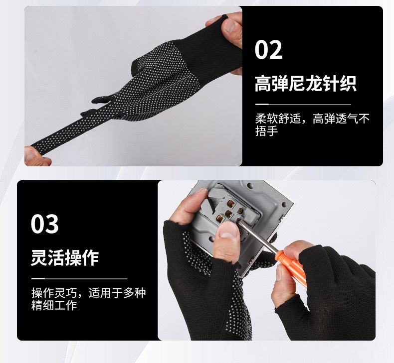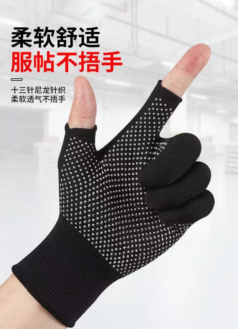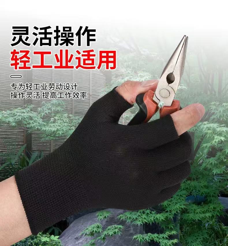 노동 장갑 나일론 미끄럼 방지 라텍스 반 손가락 장갑 건설 현장 작업 포장 따뜻하고 부드럽고 통기성이 뛰어난 자외선 차단제 장갑