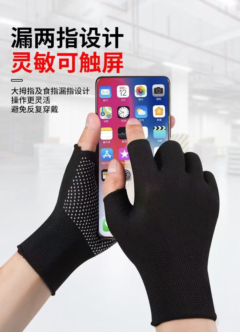 노동 장갑 나일론 미끄럼 방지 라텍스 반 손가락 장갑 건설 현장 작업 포장 따뜻하고 부드럽고 통기성이 뛰어난 자외선 차단제 장갑스토어 가기