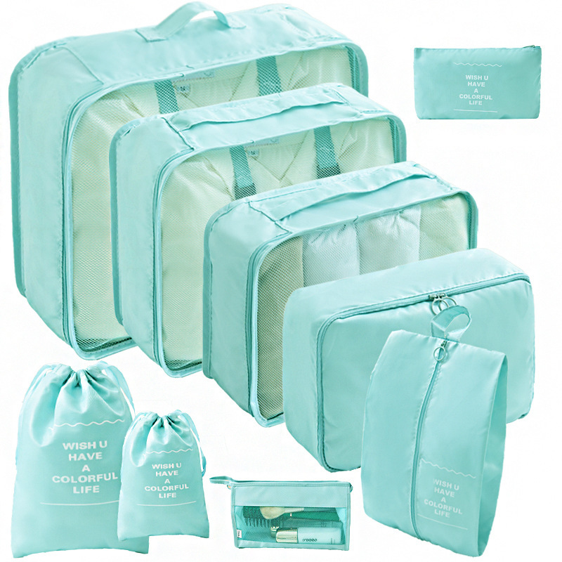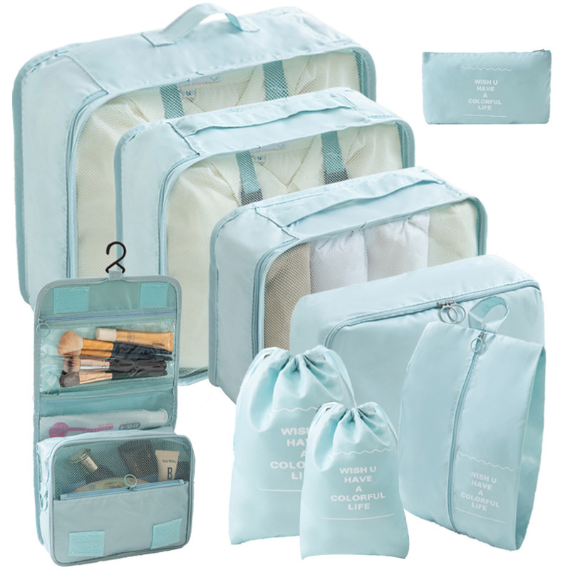 • 9종 세트 하늘색 (삼각 파우치, 걸이형 세면도구 파우치)