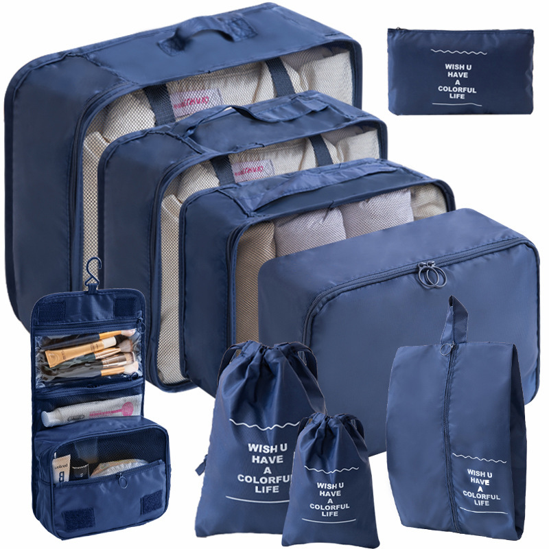 • 9종 세트 네이비 (삼각 파우치, 걸이형 세면도구 파우치)