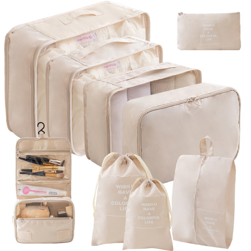 • 9종 세트 베이지 (삼각 파우치, 걸이형 세면도구 파우치)