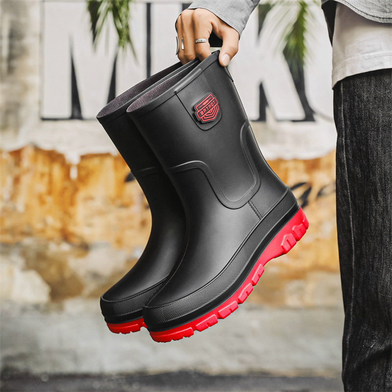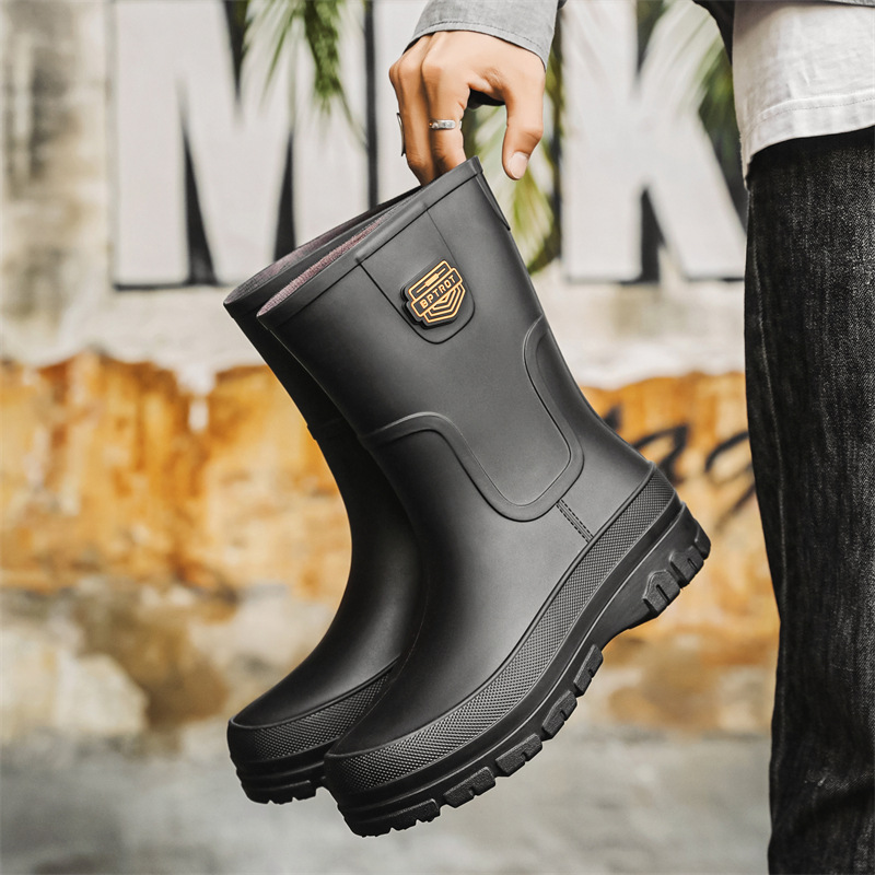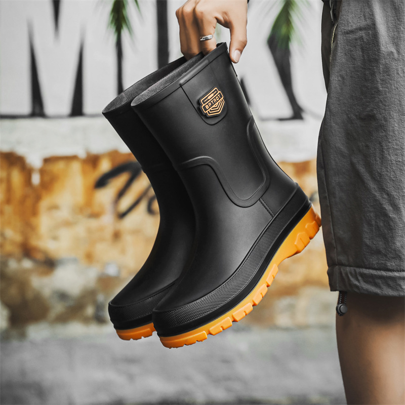 남성용 야외 미끄럼 방지 방수 종아리 중간 장화, 독일 패션 장화, 세차 및 낚시 남성용 워터 부츠, 농업용 고무 신발스토어 가기