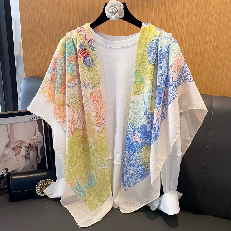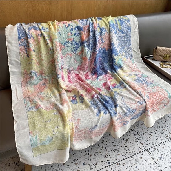 린넨 130 대형 스카프 컬러풀 스카프 여행 사진 촬영용 자외선 차단 스카프 에어컨 방용 숄 프린트 자외선 차단 프린트