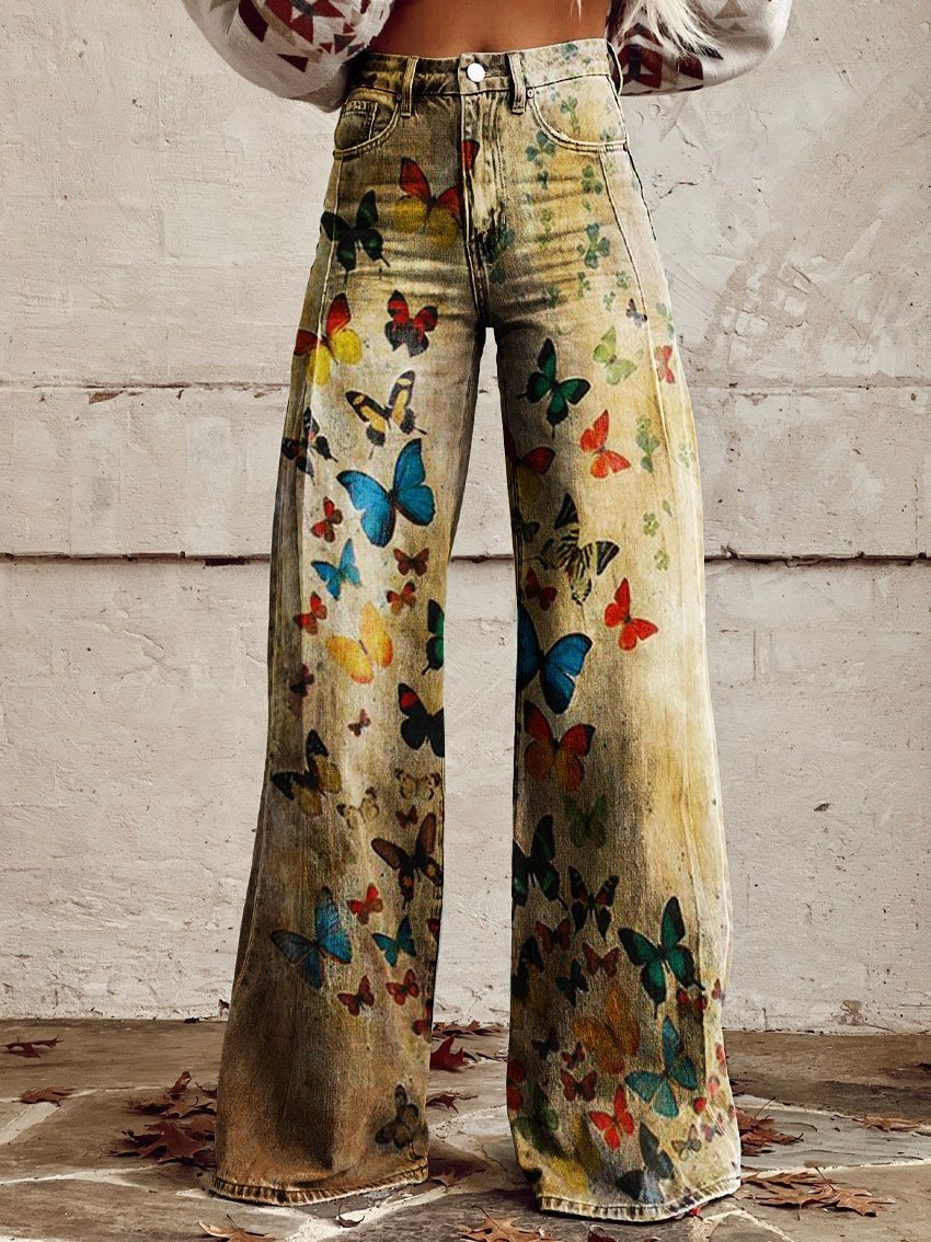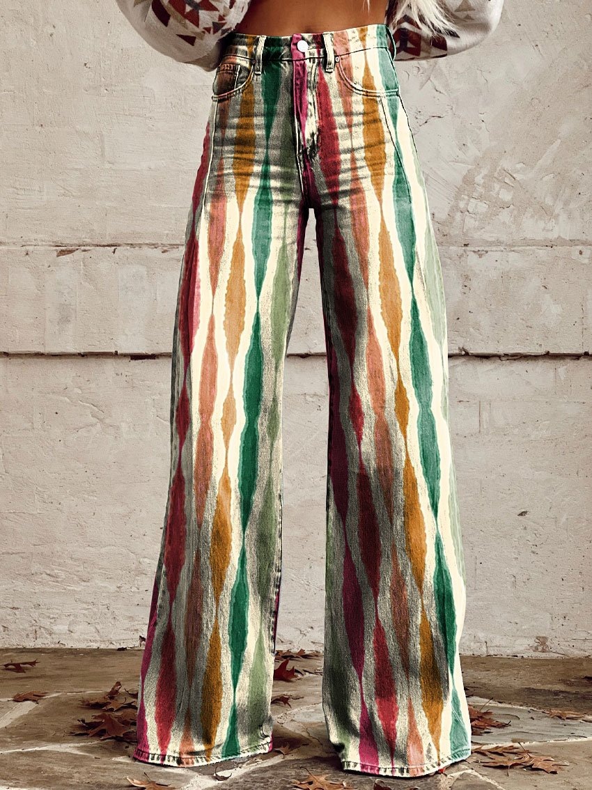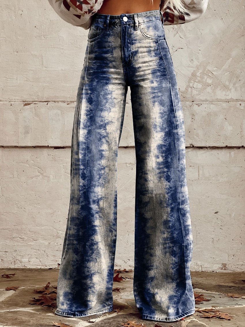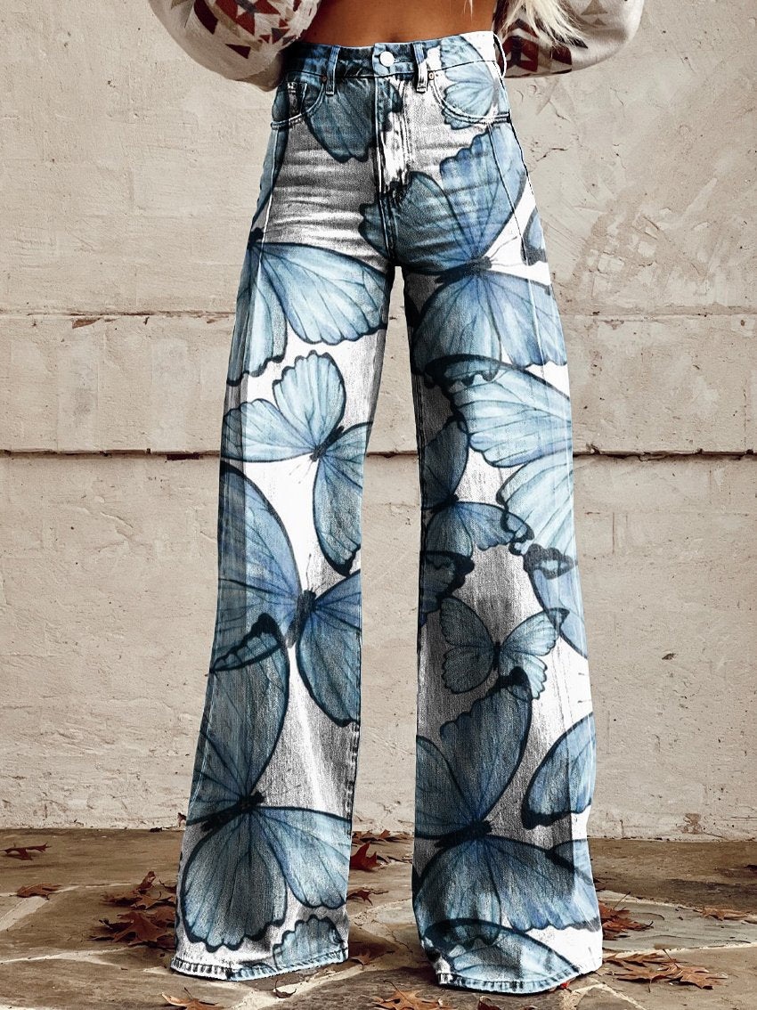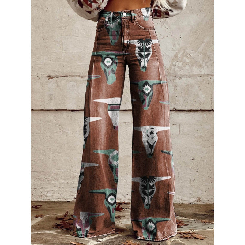 이베이 유럽과 미국 대외 무역 플러스 사이즈 여성 캐주얼 바지 트렌디 모조 청바지 와이드 레그 디지털 프린트 능직 바지스토어 가기
