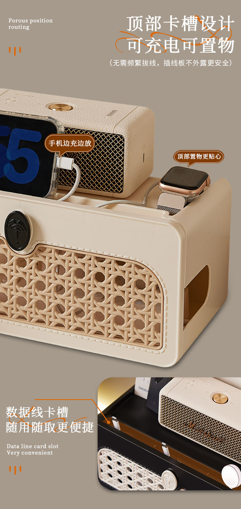 케이블 박스 소켓 차폐 플러그인 스트립 보관함 전원 코드 관리 상자 데스크탑 중세 스타일 플러그인 스트립 정리 상자