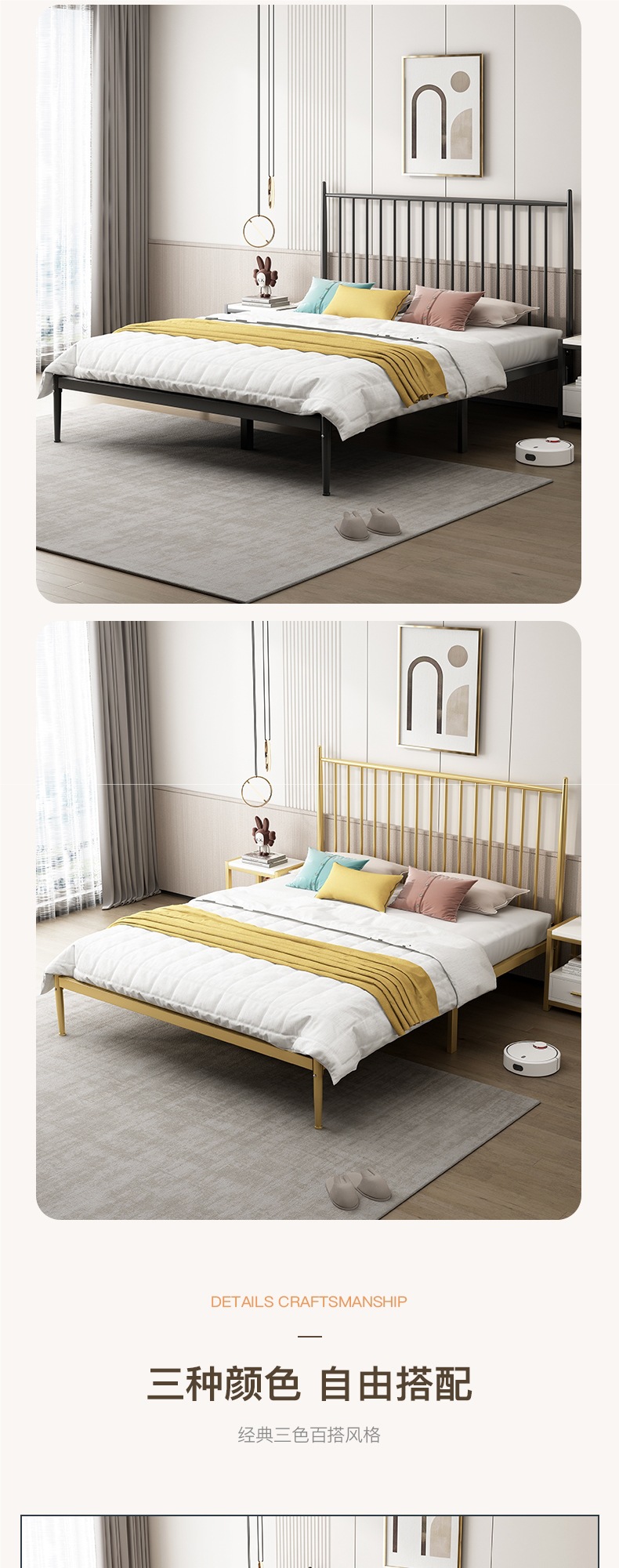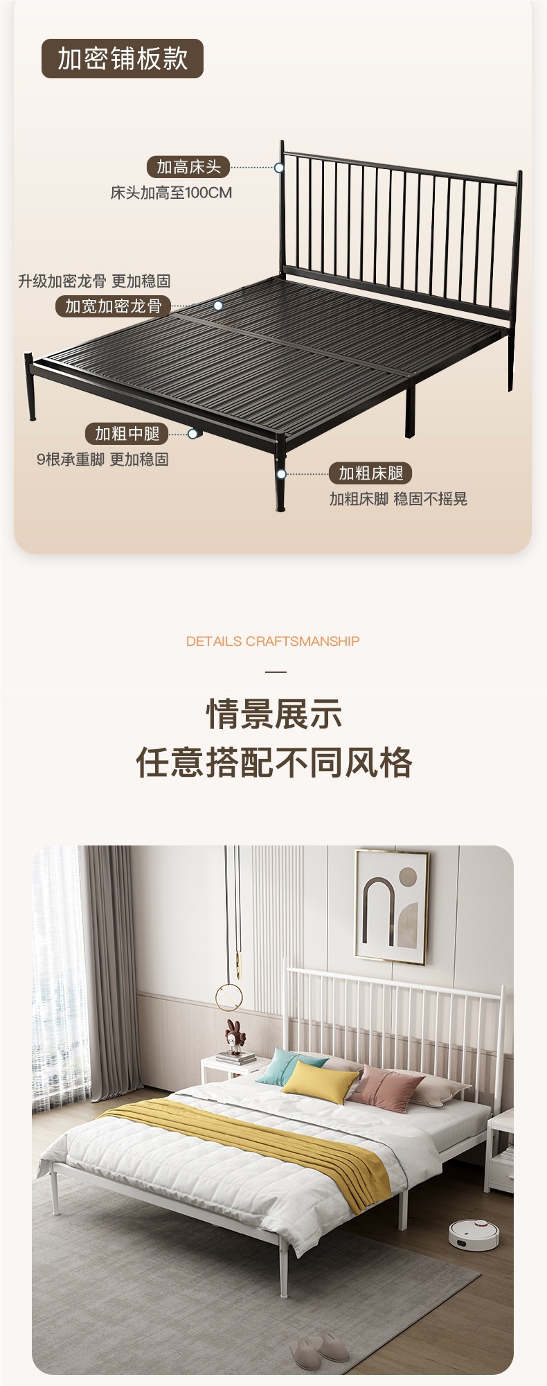 경제적인 가정용 철제 침대 더블 침대 현대적인 간단한 행 뼈대 침실 철 침대 싱글 침대 프레임 두껍고 두꺼운스토어 가기