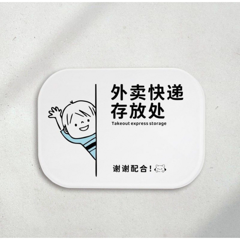 택배 테이크아웃을 현관에 보관하세요. 푸딩의 집에서는 문을 두드려서 택배를 받으세요. 이 사이즈의 알림판을 보관하세요.
