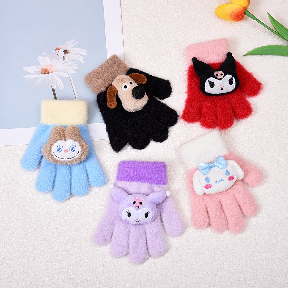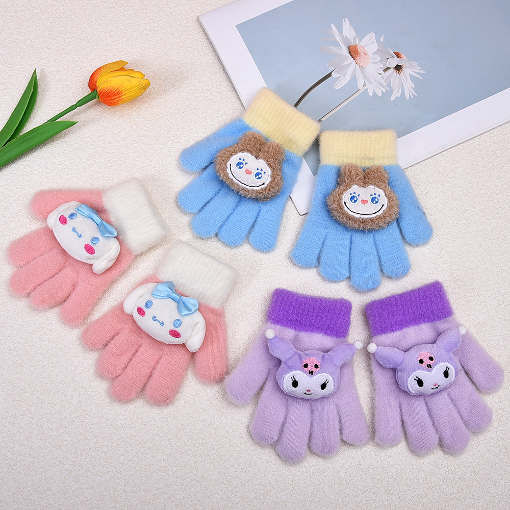 가을 겨울 어린이 장갑 창의적이고 귀여운 분리형 장갑 한국 스타일 만화 라부브 두꺼운 다섯 손가락 보온 장갑스토어 가기