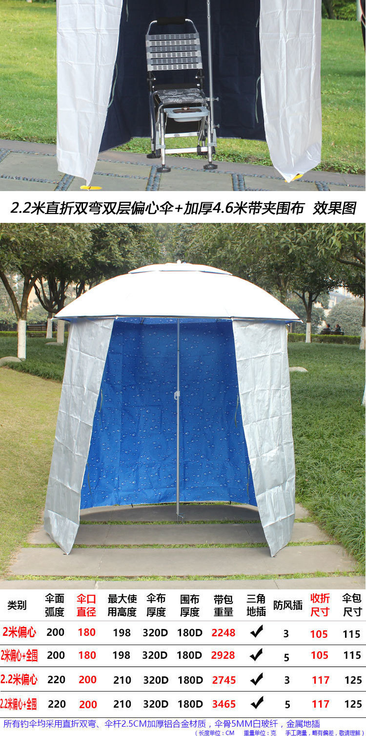 야외 낚시 우산 2.2m 범용 방수, 자외선 차단, 방풍 파라솔 접이식 초경량 전체 천 앞치마 포함스토어 가기