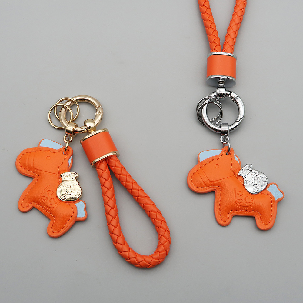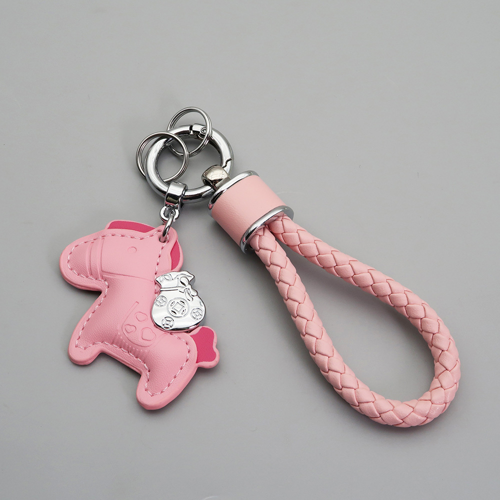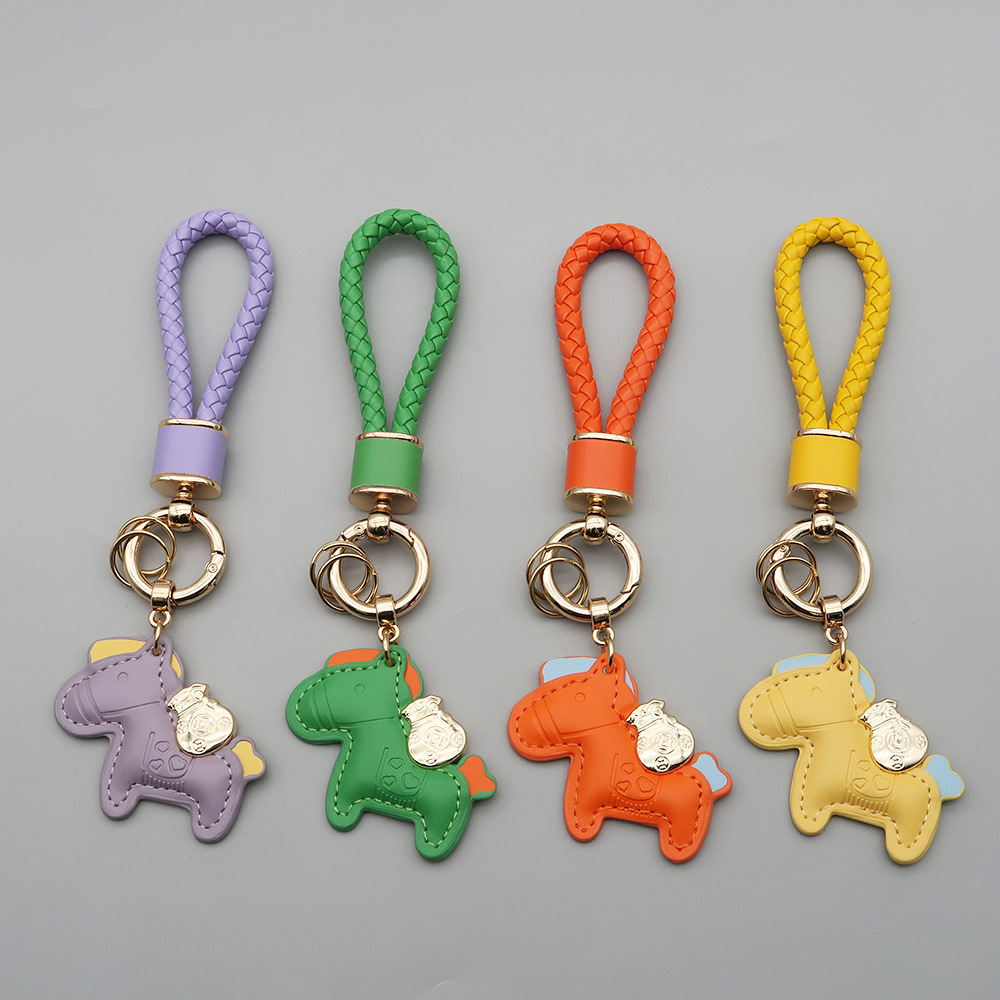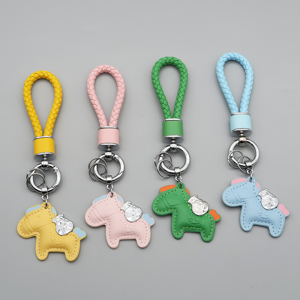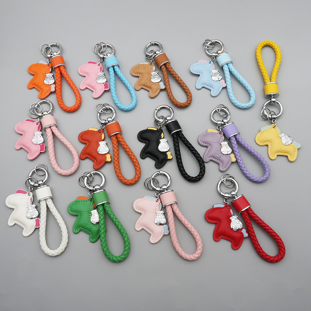즉시 돈 열쇠 고리 패션 가죽 땋은 로프 만화 귀여운 자동차 열쇠 고리 가방 조랑말 펜던트