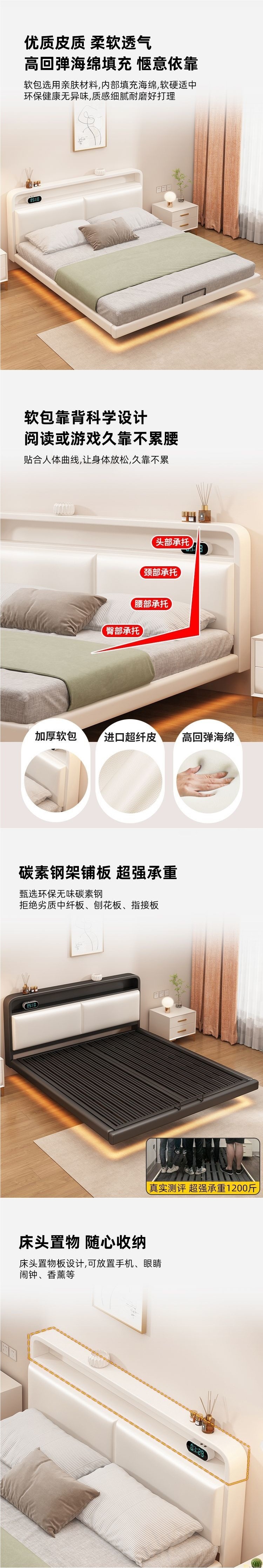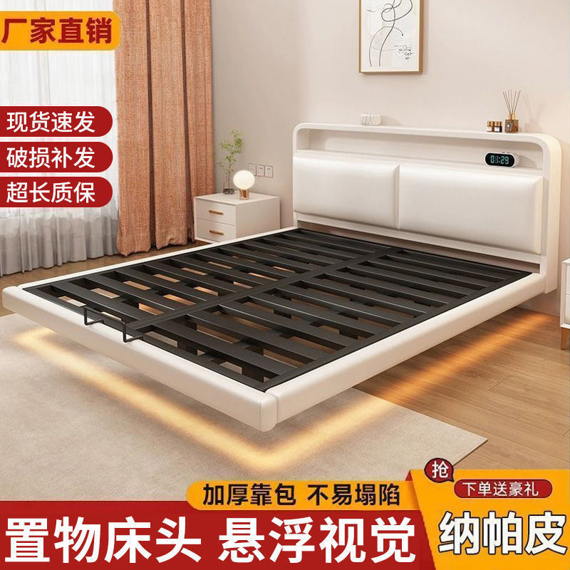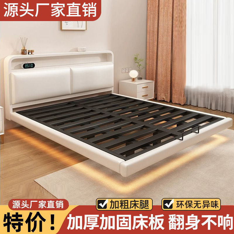 연철 침대, 더블 침대, 마스터 침실, 스테인레스 스틸 공중에 매달린 철제 프레임 침대, 두껍고 두꺼운 철제 프레임 침대, 현대적인 간단한 공중에 매달린 침대스토어 가기