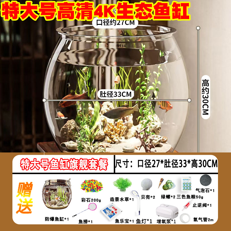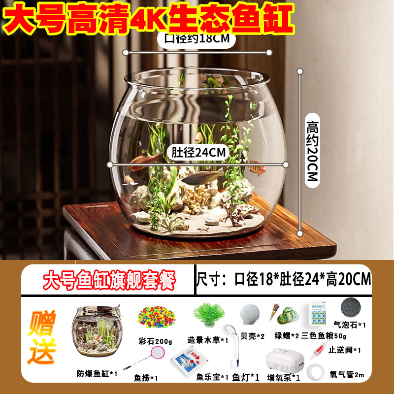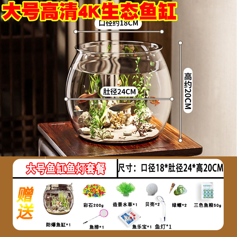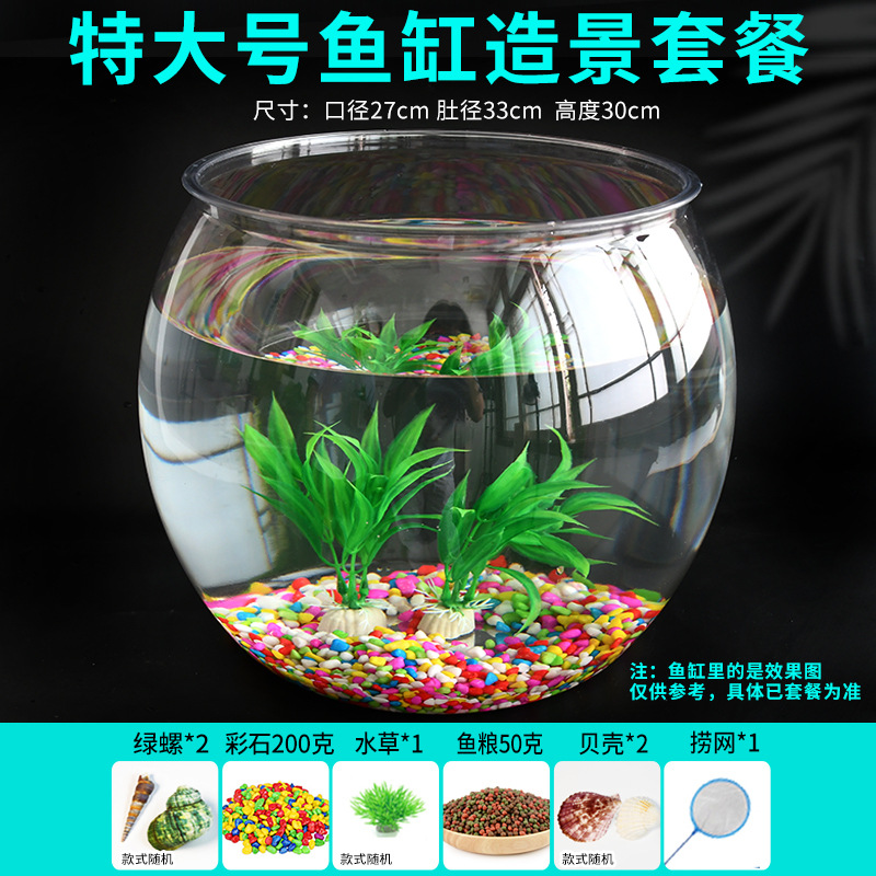 둥근 플라스틱 작은 어항 일체형 모조 유리 낙하 방지 및 거실용 소형 데스크탑 생태 탱크스토어 가기