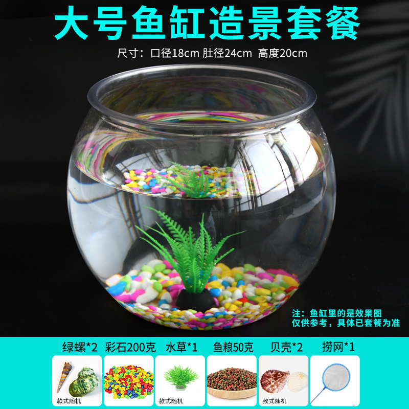 둥근 플라스틱 작은 어항 일체형 모조 유리 낙하 방지 및 거실용 소형 데스크탑 생태 탱크