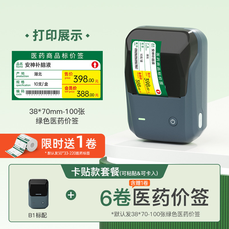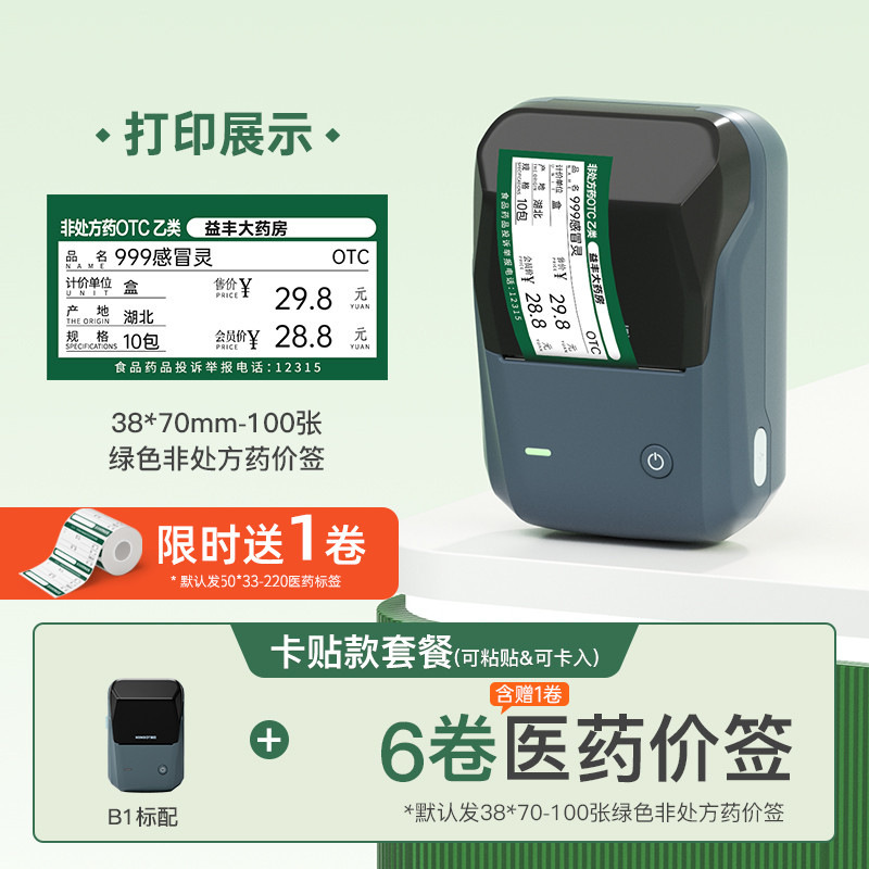 • [용지 걸림_붙이기 2용] B1 기계 + 파란색 의약품 가격표 6롤 + 무료 의약품 라벨 1롤