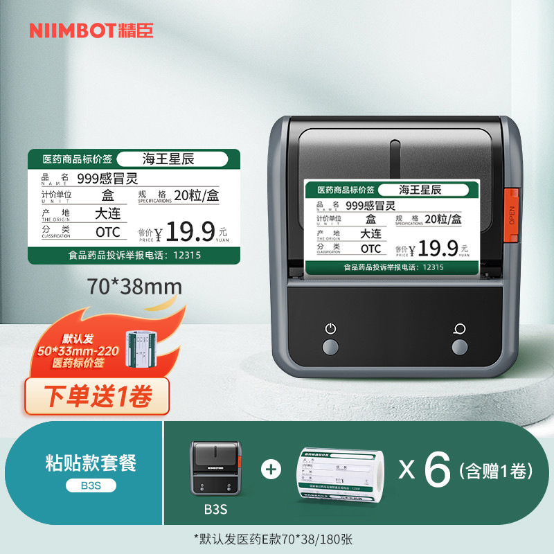 • [접착제형] B3S + 의약품 라벨 6롤(1롤 무료 포함) + 기간 한정 1롤