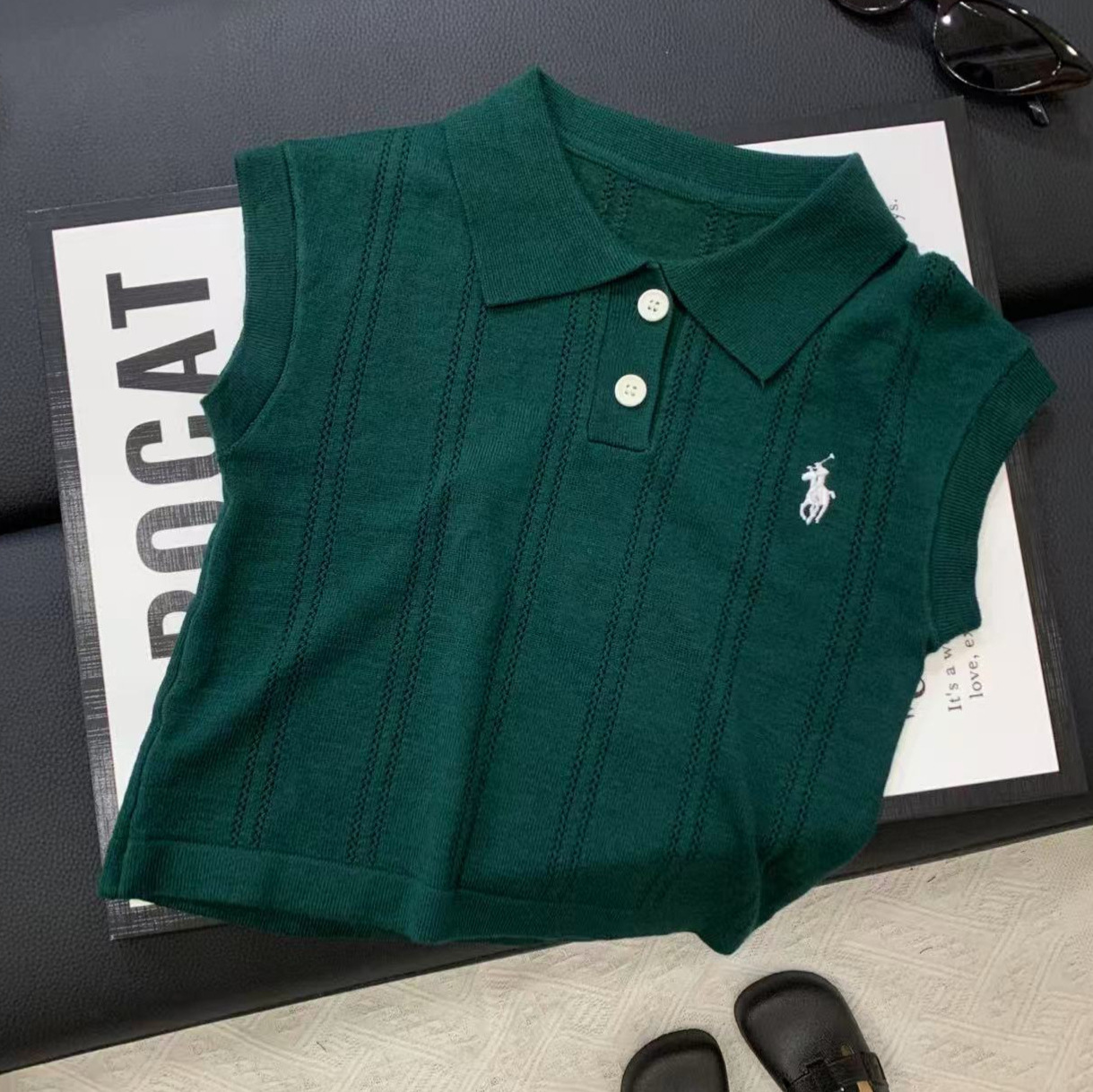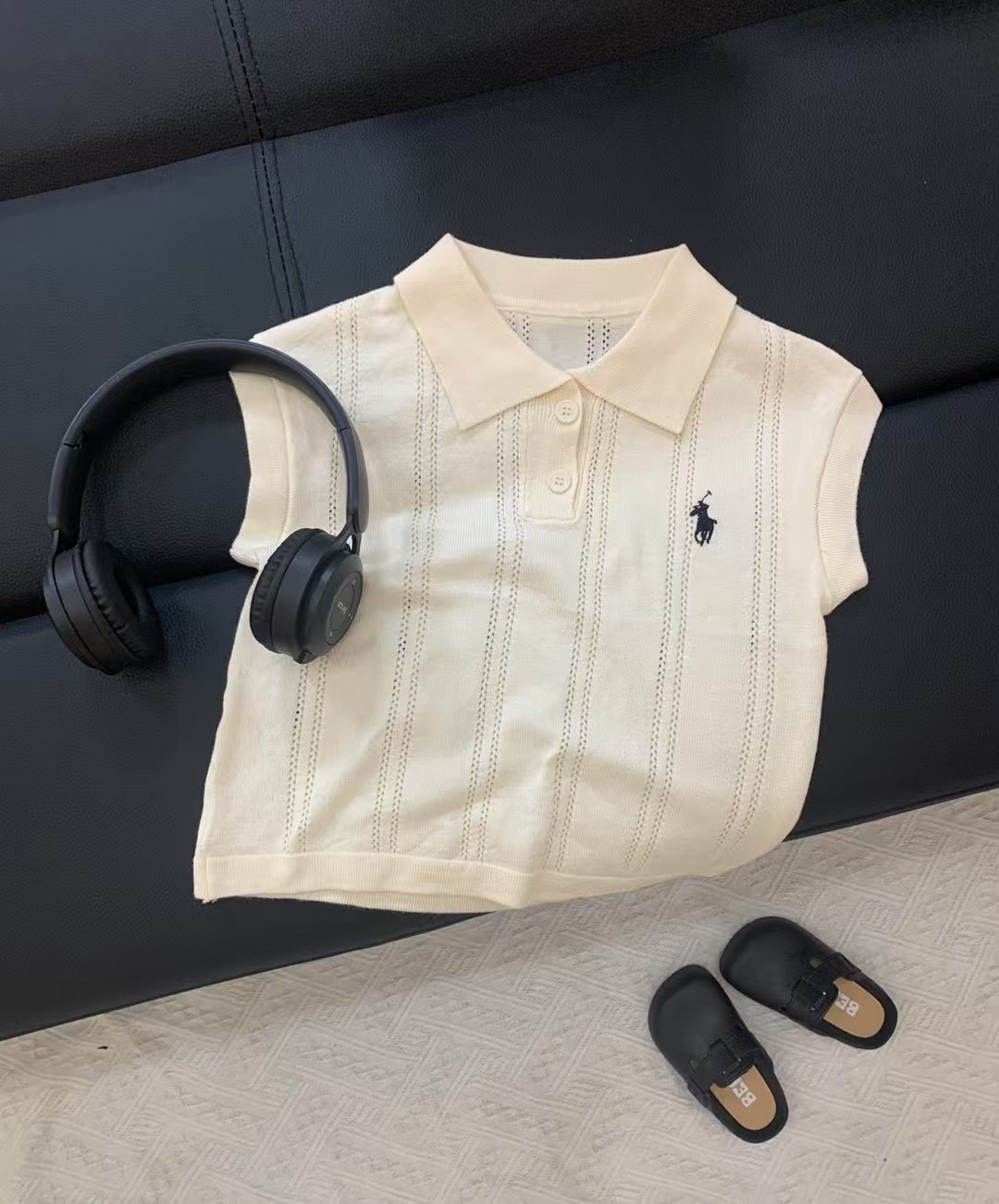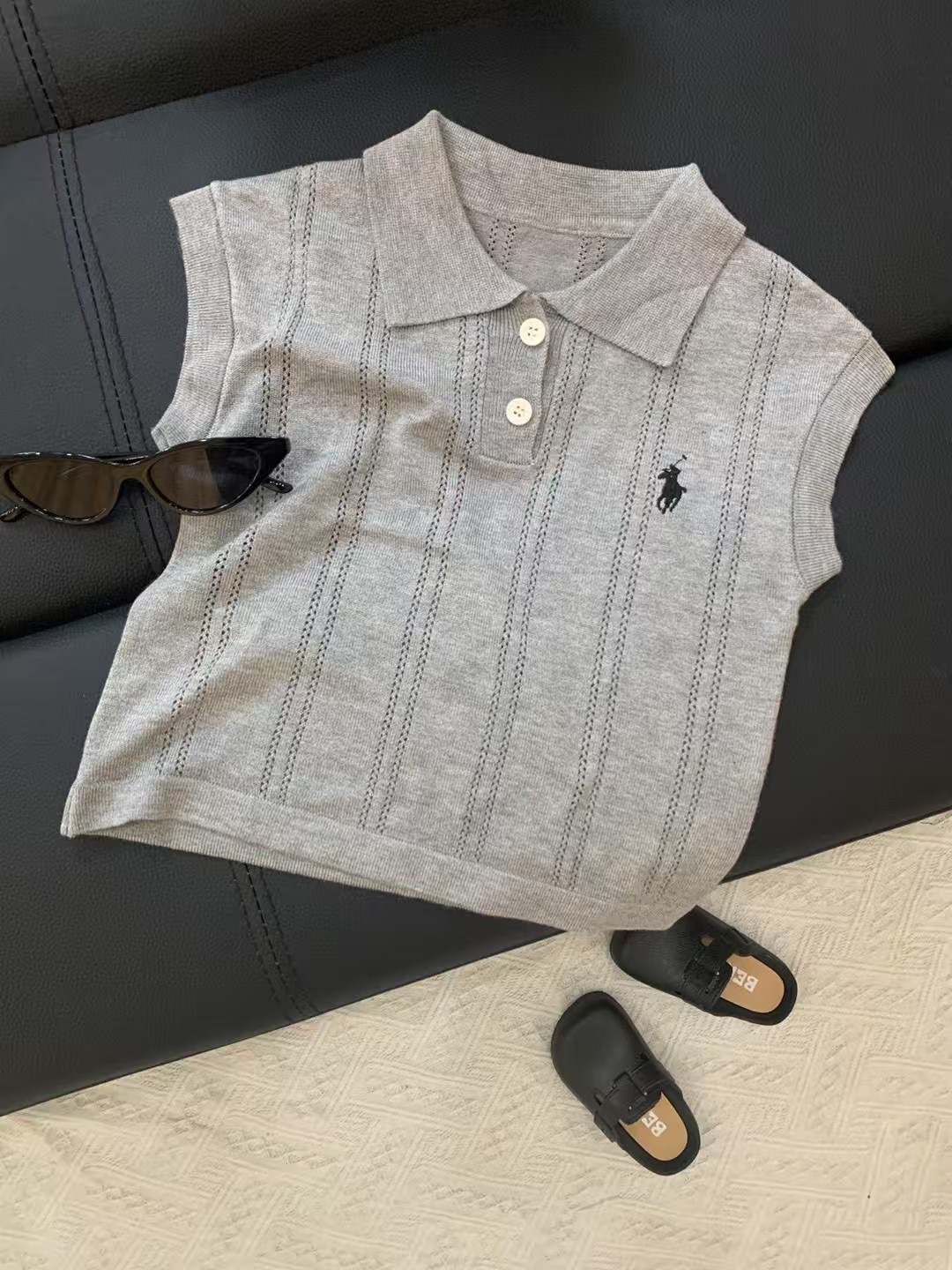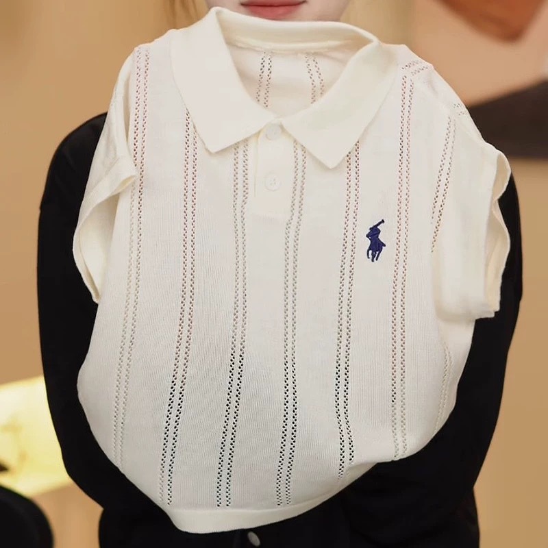 여름 아동복, 올드 머니 스타일 폴로 셔츠, 반팔 중공 리오셀 자수, 남아 및 여아용 세련되고 통기성이 뛰어난 아동복스토어 가기