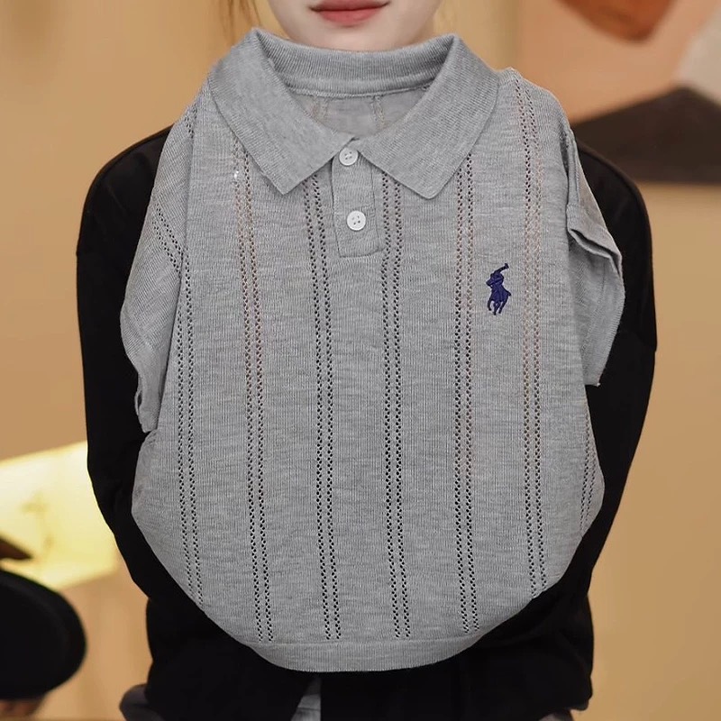 여름 아동복, 올드 머니 스타일 폴로 셔츠, 반팔 중공 리오셀 자수, 남아 및 여아용 세련되고 통기성이 뛰어난 아동복