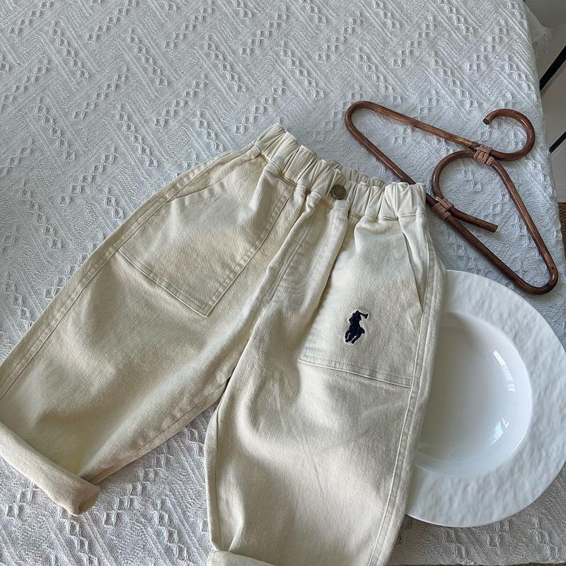 아동용 스트레이트 팬츠 2025 봄, 가을 스타일 소년 소녀 솔리드 컬러 자수 당근 바지 베이비 트렌디 캐주얼 바지스토어 가기
