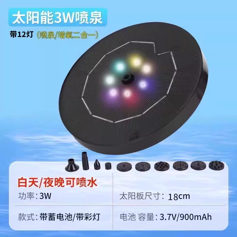 • 18cm 태양광-12등 3W 컬러라이트 분수 [축전형-900MA]