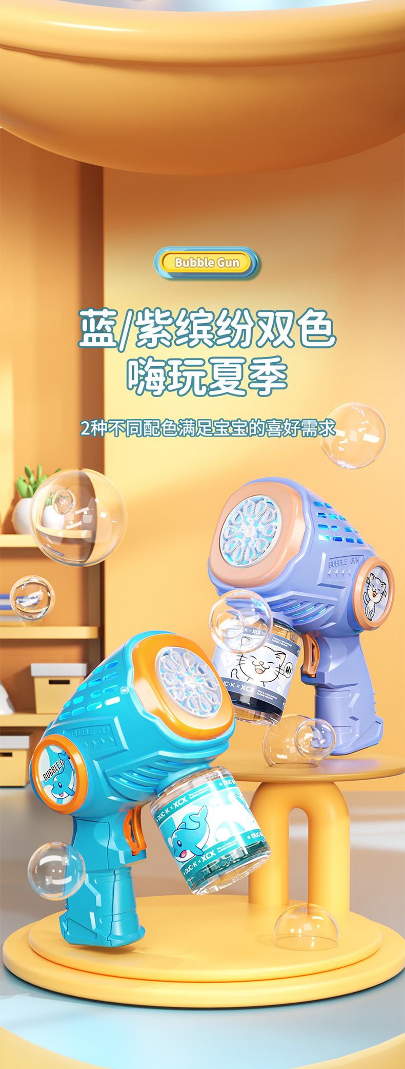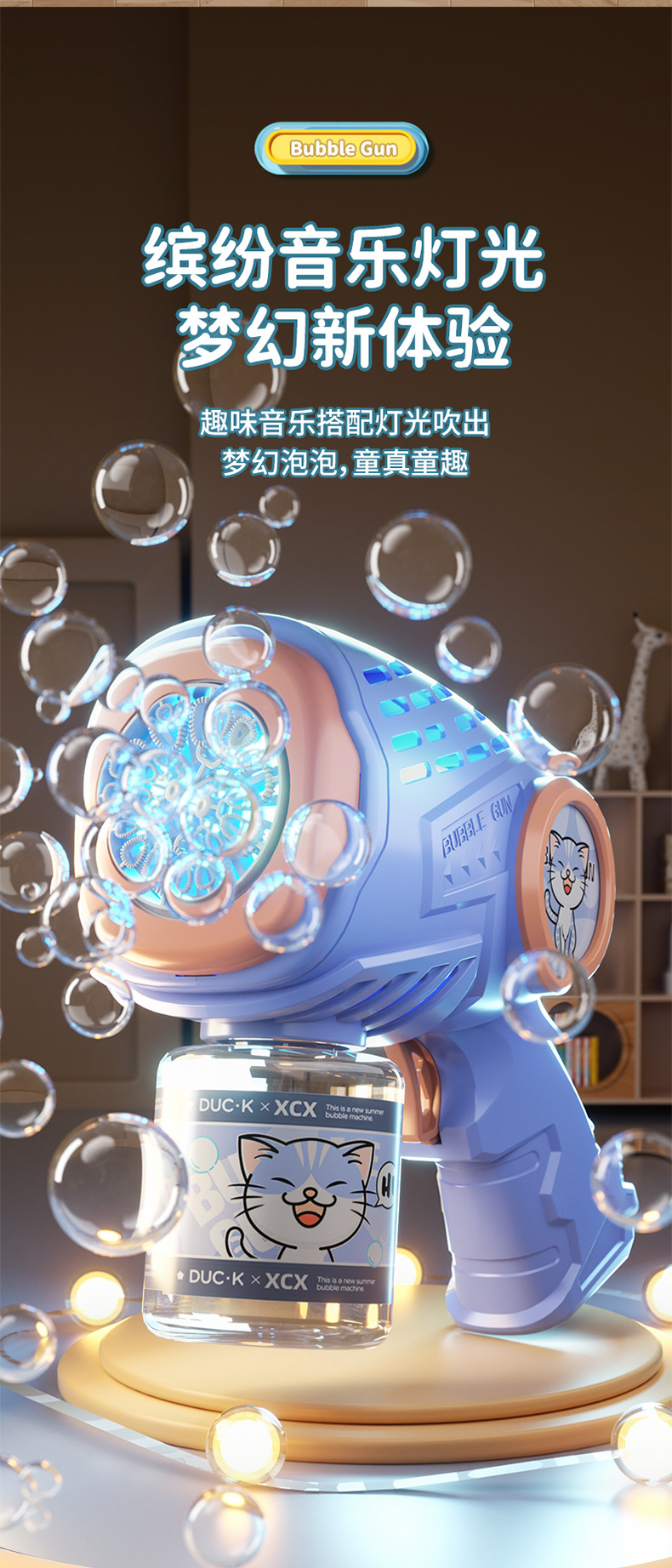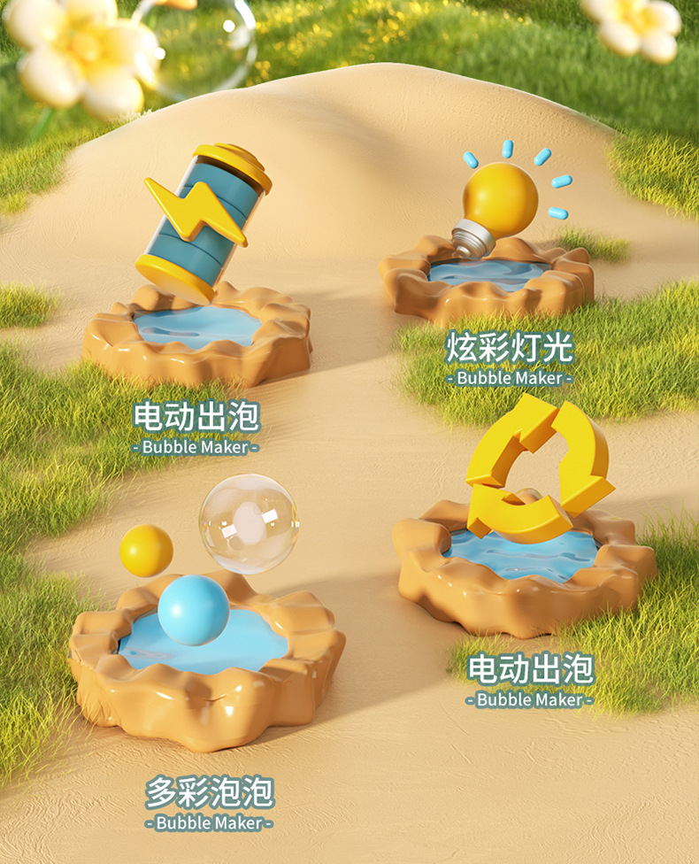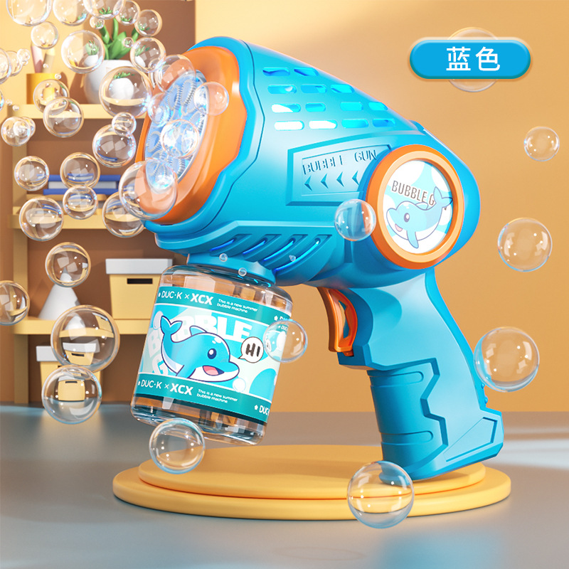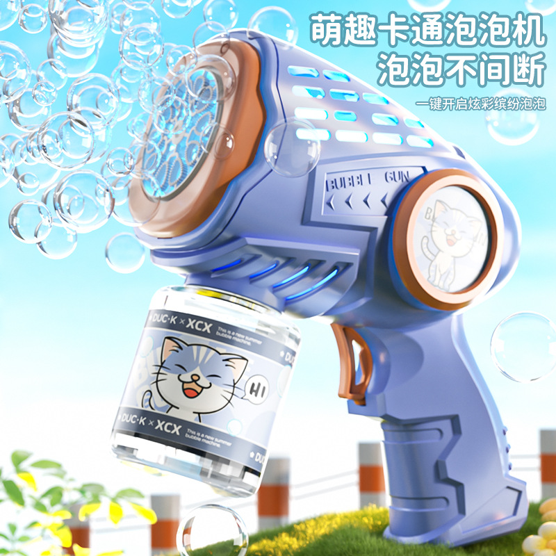 새로운 만화 전기 버블 머신, 완전 자동 버블 건, 조명, 원클릭 버블, 인터넷 연예인 어린이 장난감 도매