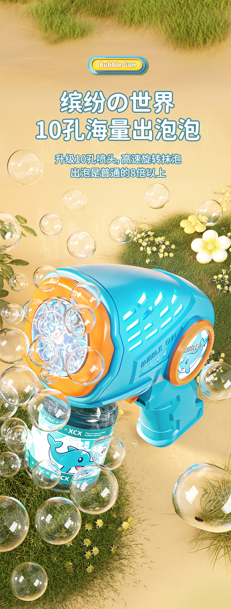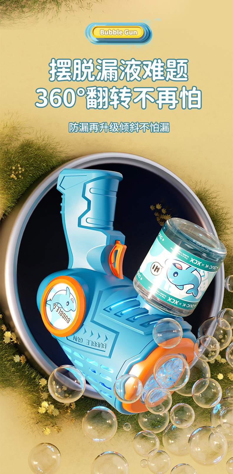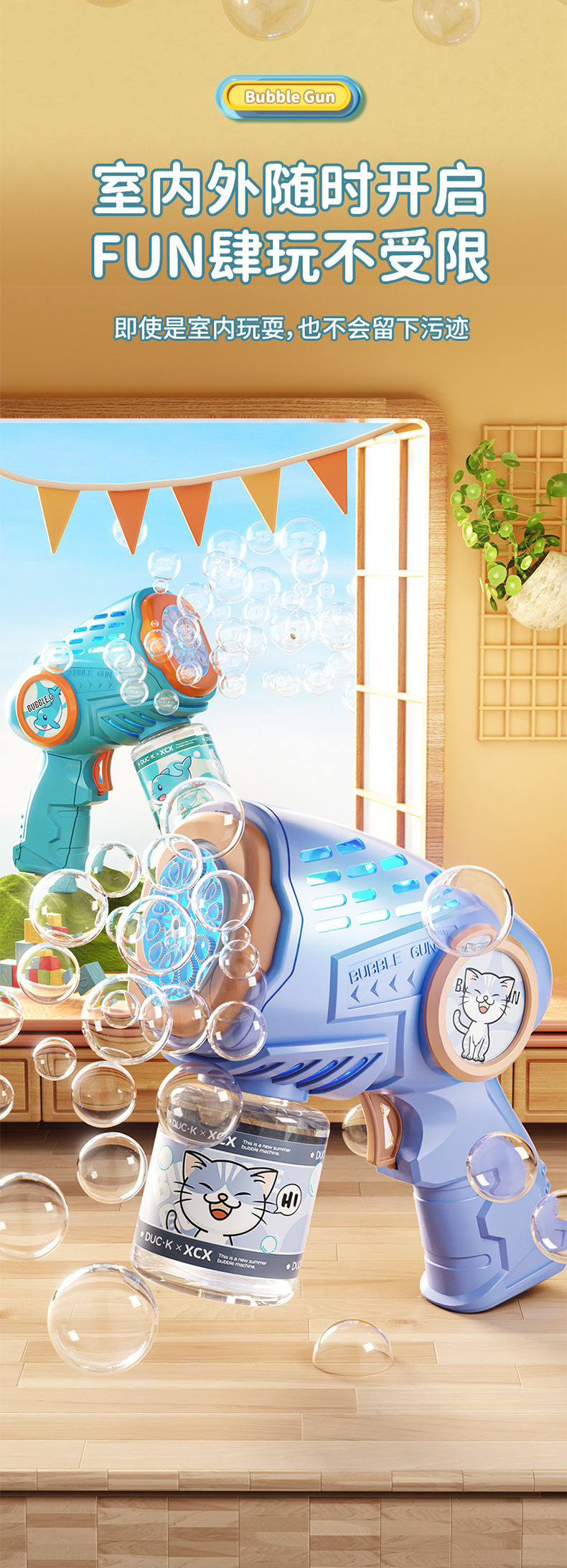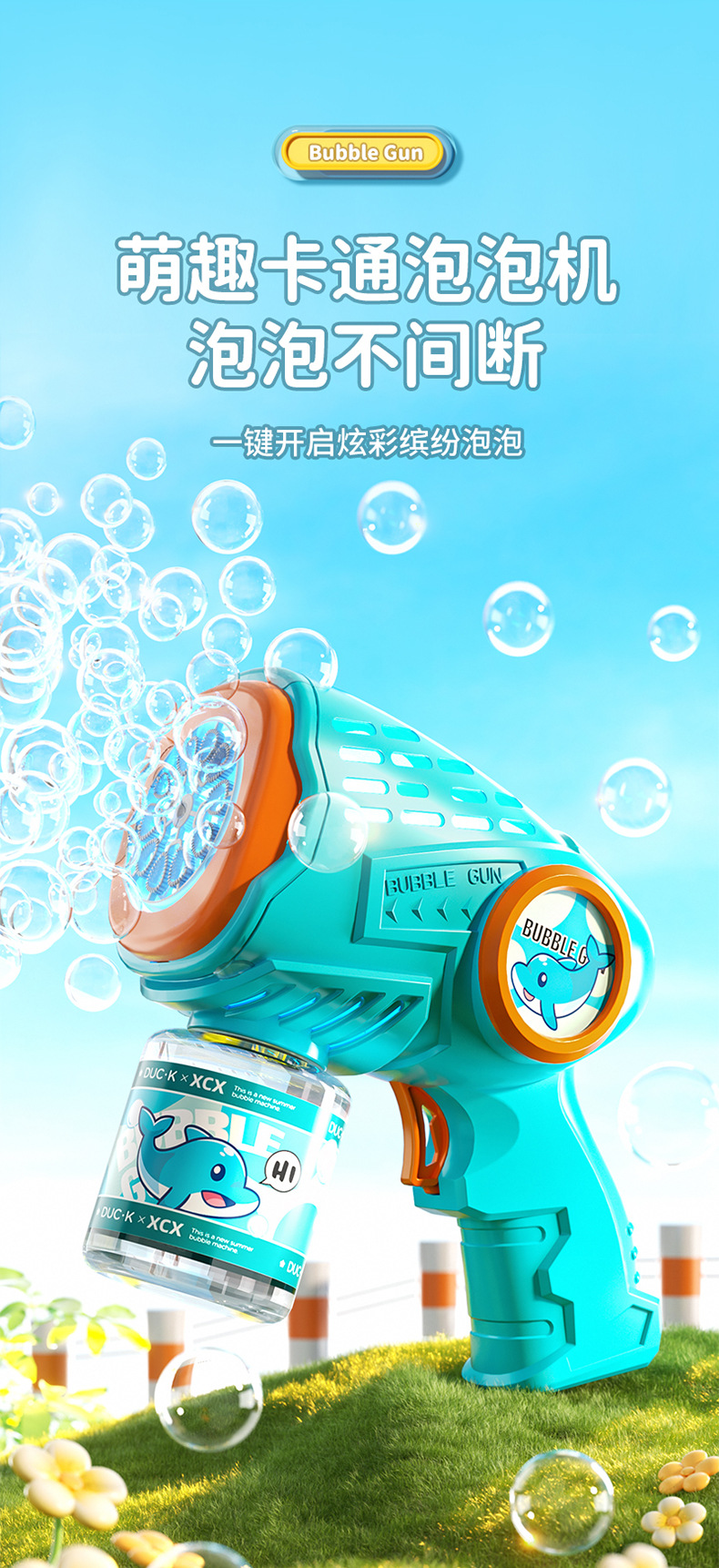 새로운 만화 전기 버블 머신, 완전 자동 버블 건, 조명, 원클릭 버블, 인터넷 연예인 어린이 장난감 도매