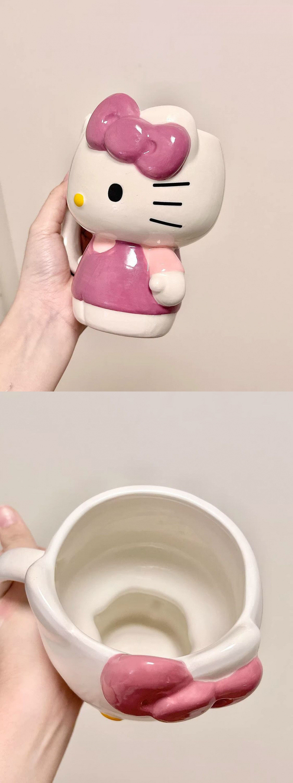 hellokitty 세라믹 컵 헬로 키티 컵 크리 에이 티브 머그잔 만화 귀여운 소녀 워터 컵 실용적인 대용량스토어 가기