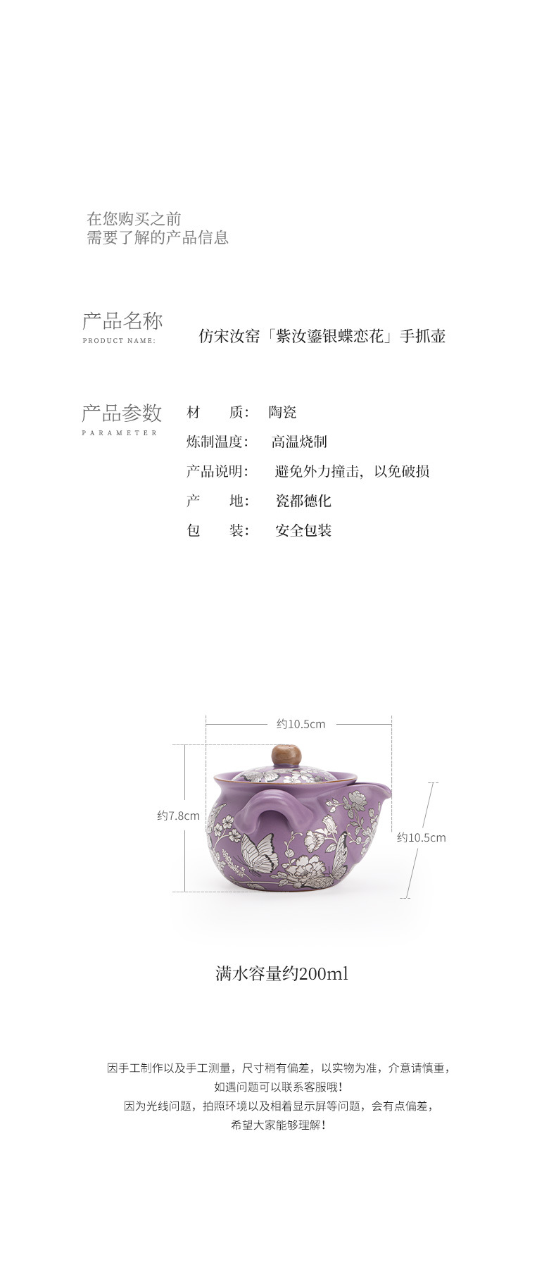 경덕진 Ziru 실버 나비 주전자, 손잡이 주전자, 물병 주전자, 세라믹 차 세트, 절묘한 주전자, 쿵푸 차 세트스토어 가기