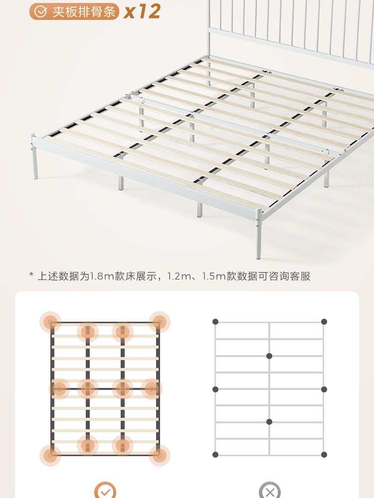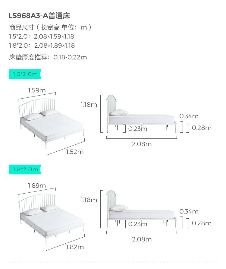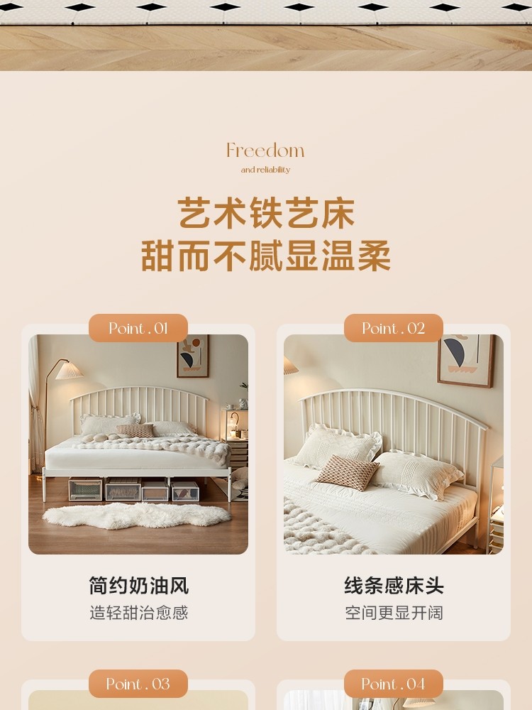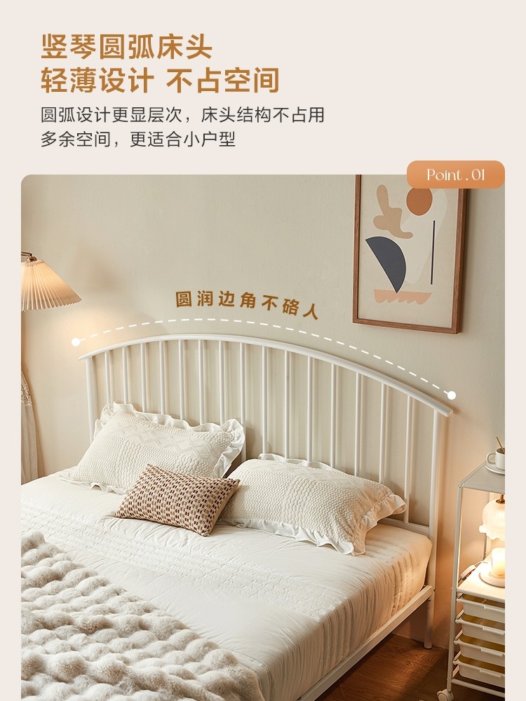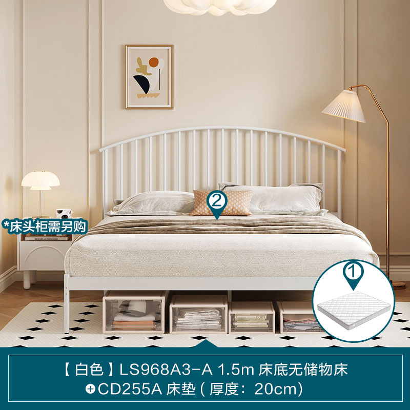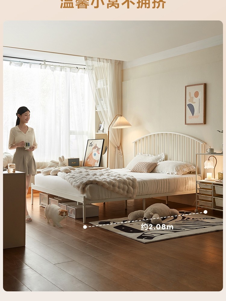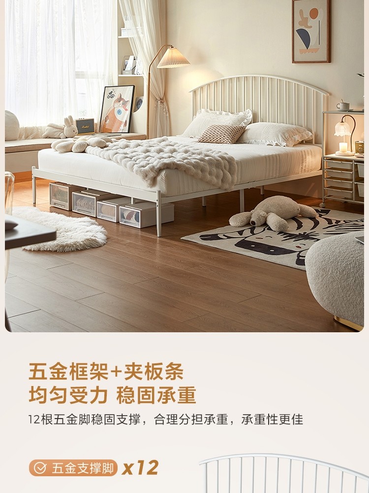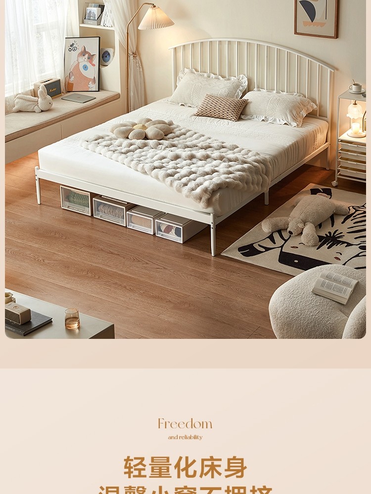 연철 침대 공주 스타일 크림 스타일 연철 침대 가정용 소형 1.8m 더블 침대 현대 단순 1.2m스토어 가기