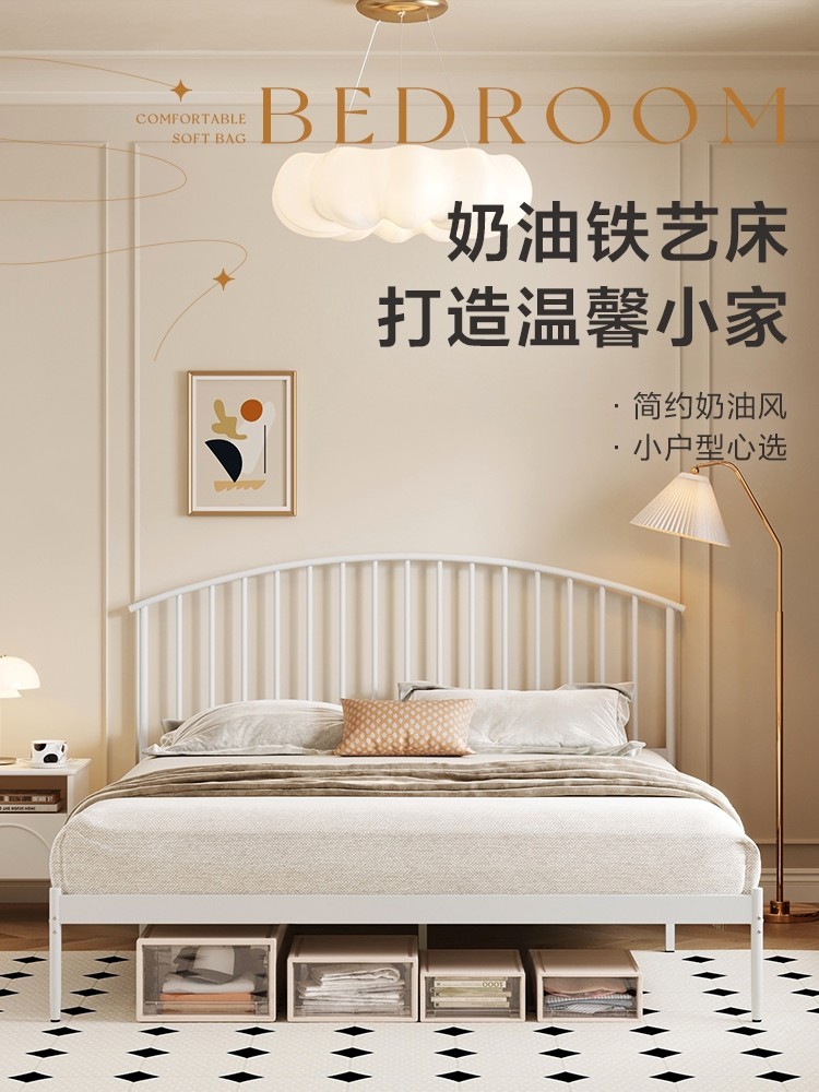 연철 침대 공주 스타일 크림 스타일 연철 침대 가정용 소형 1.8m 더블 침대 현대 단순 1.2m