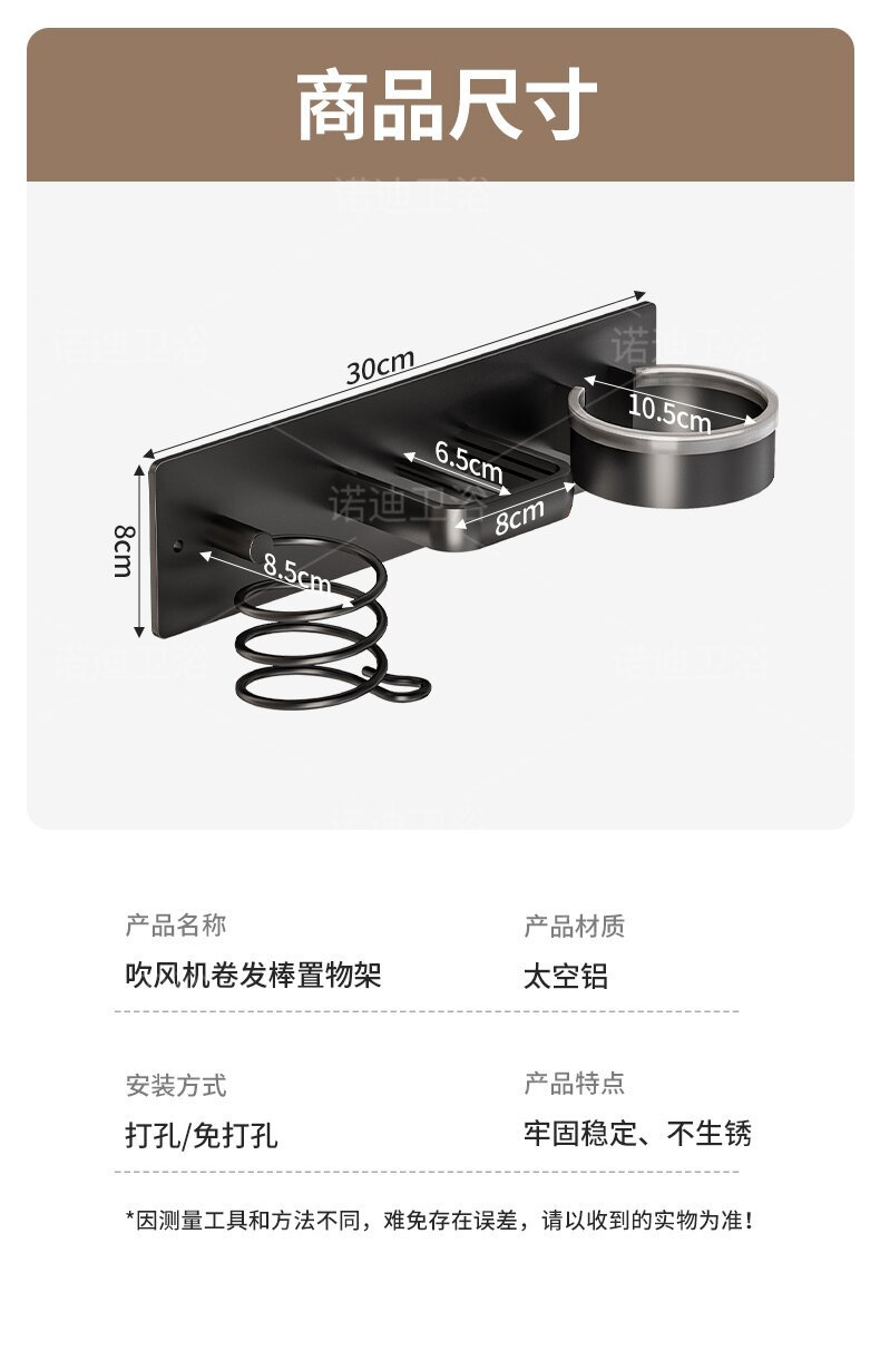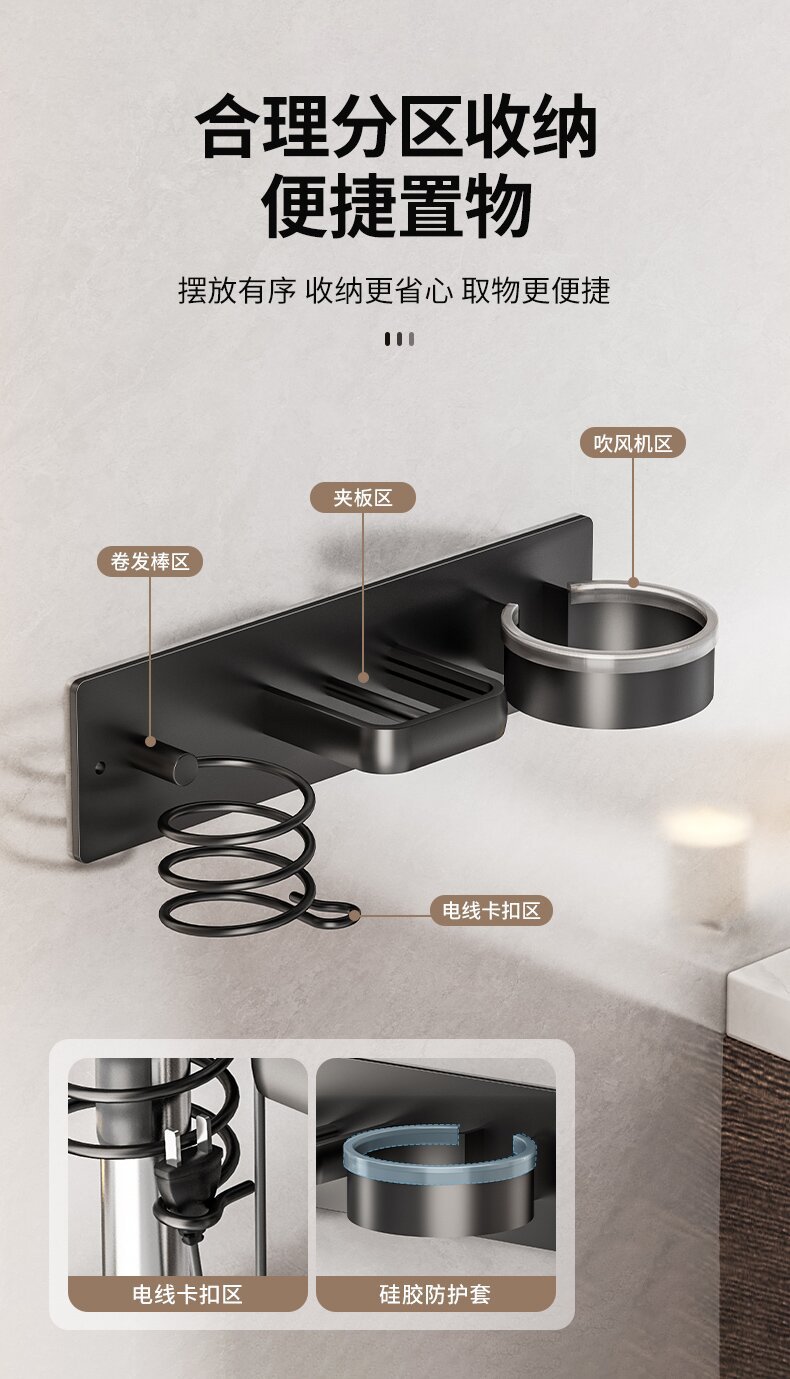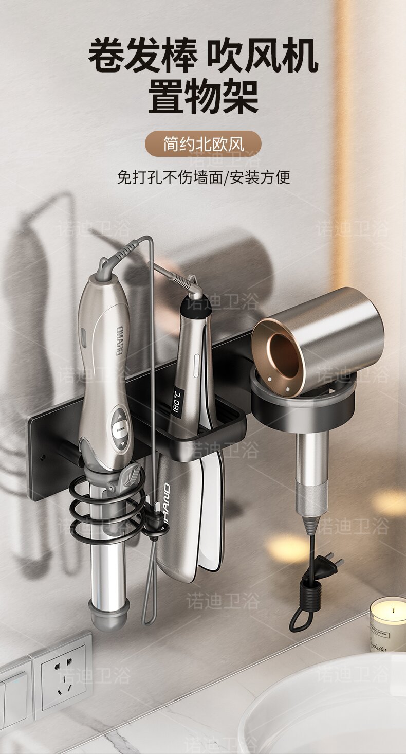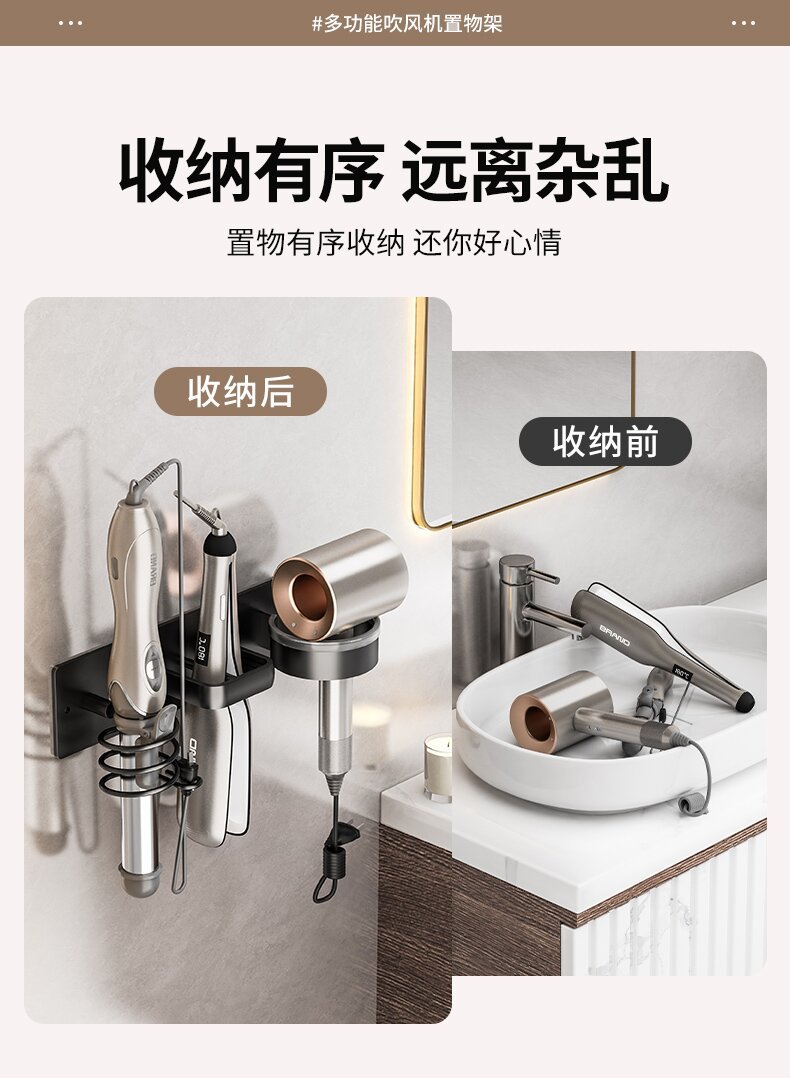 헤어드라이어 보관함, 헤어드라이어 랙, 가정용 욕실 선반, 펀치 없는 배치 랙, 헤어드라이어 벽걸이 브래킷