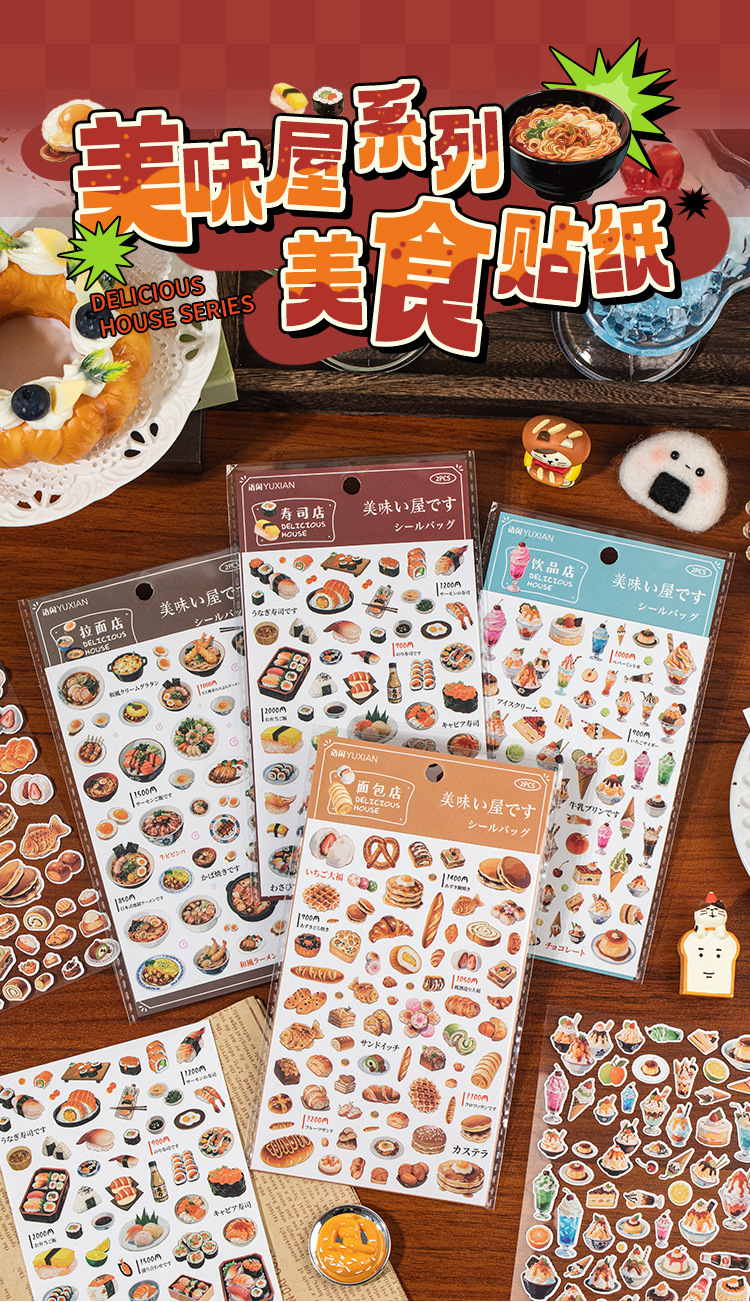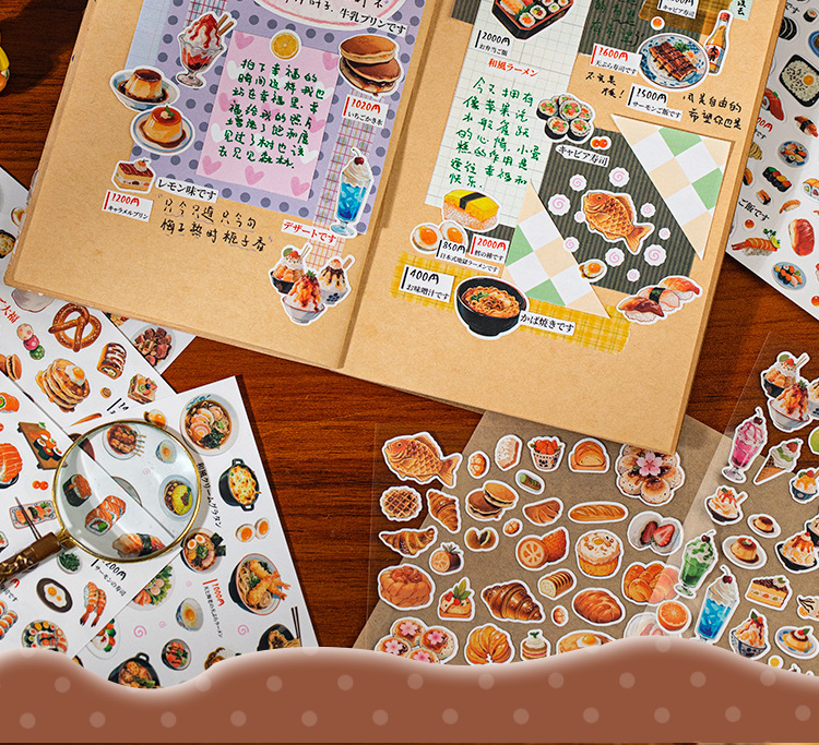 Yuxian 조경 음식 스티커 맛있는 집 시리즈 고대 스타일 다목적 재료 핸드북 diy 장식 Guka 콜라주