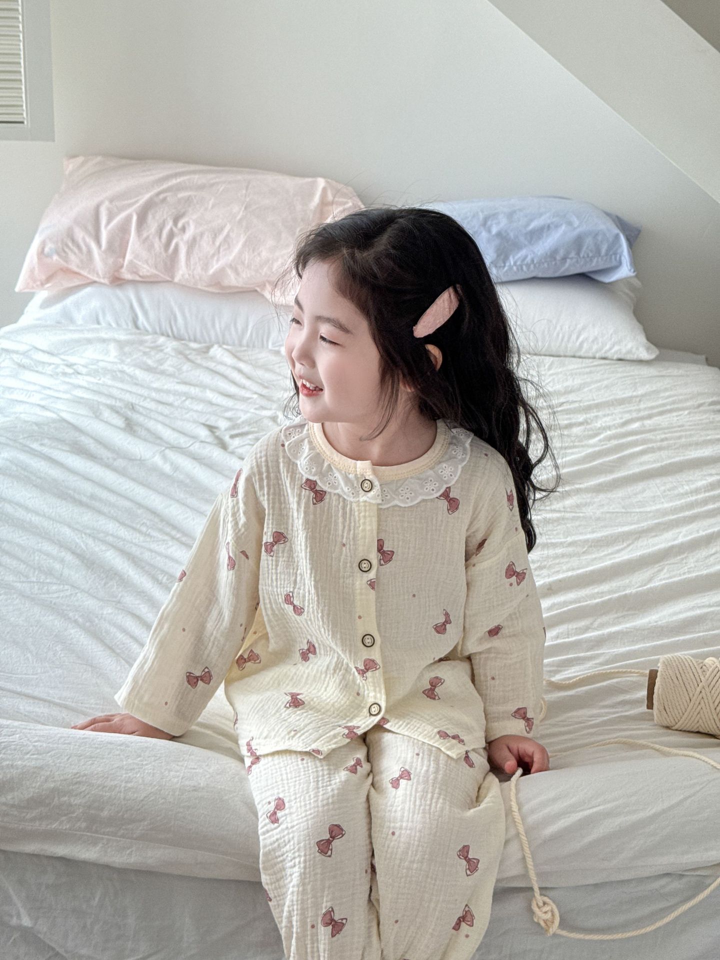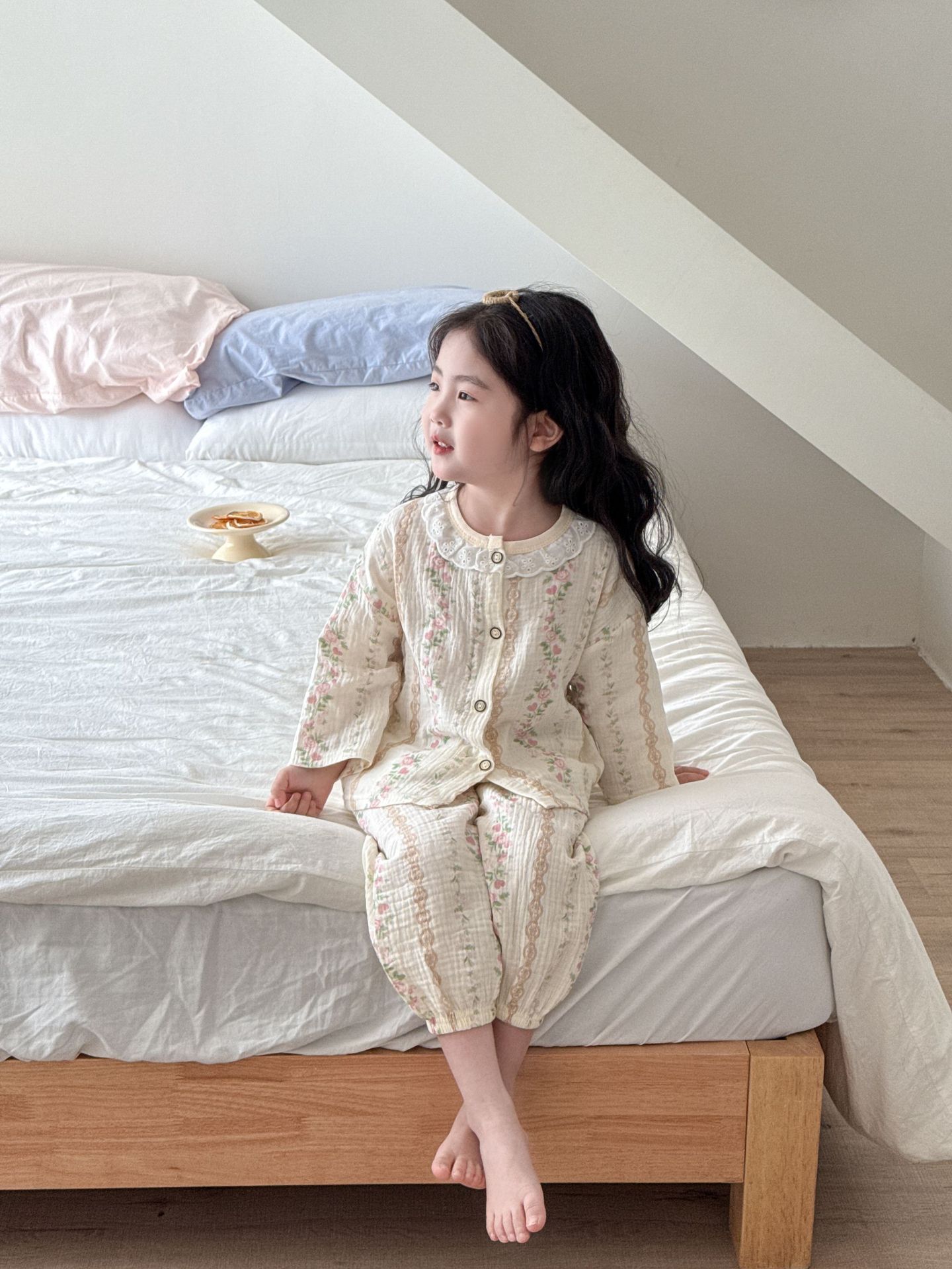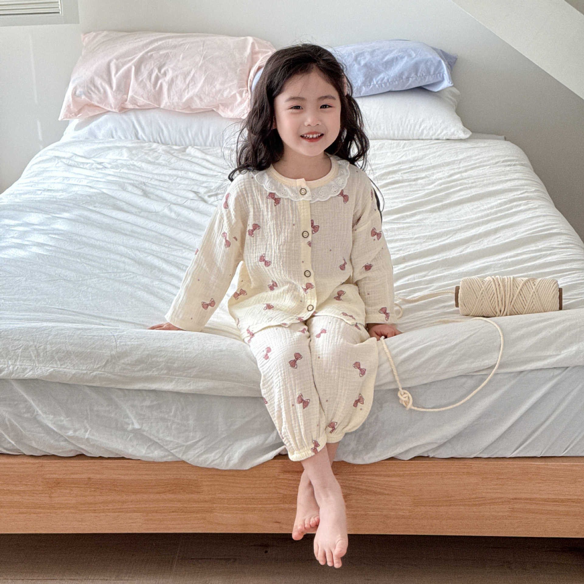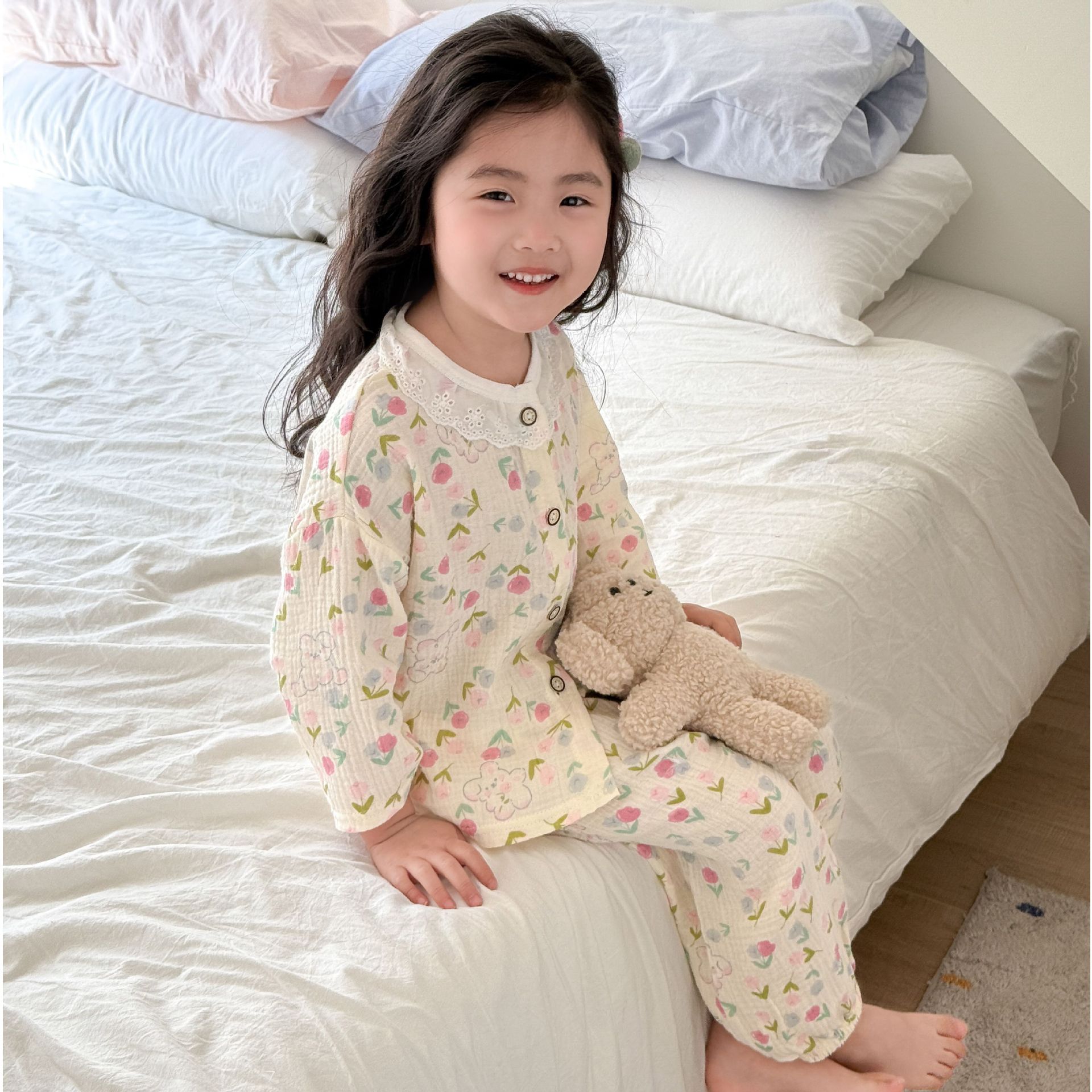 여자 2025 봄과 가을 새로운 어린이 에어컨 옷 순수 코튼 거즈 아기 봄과 여름 가정 옷 얇은 잠옷스토어 가기