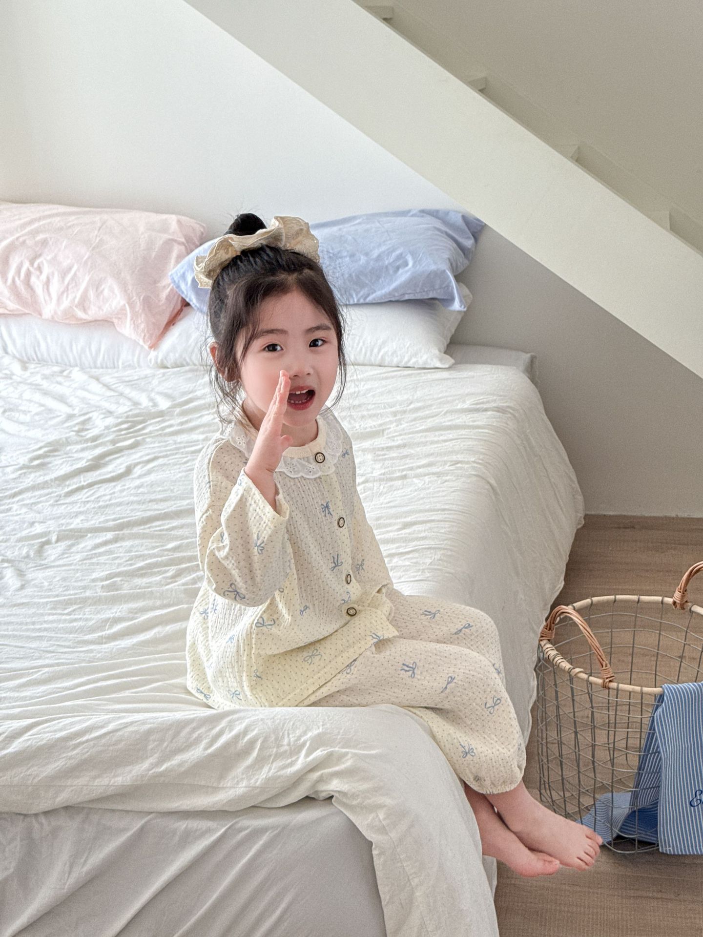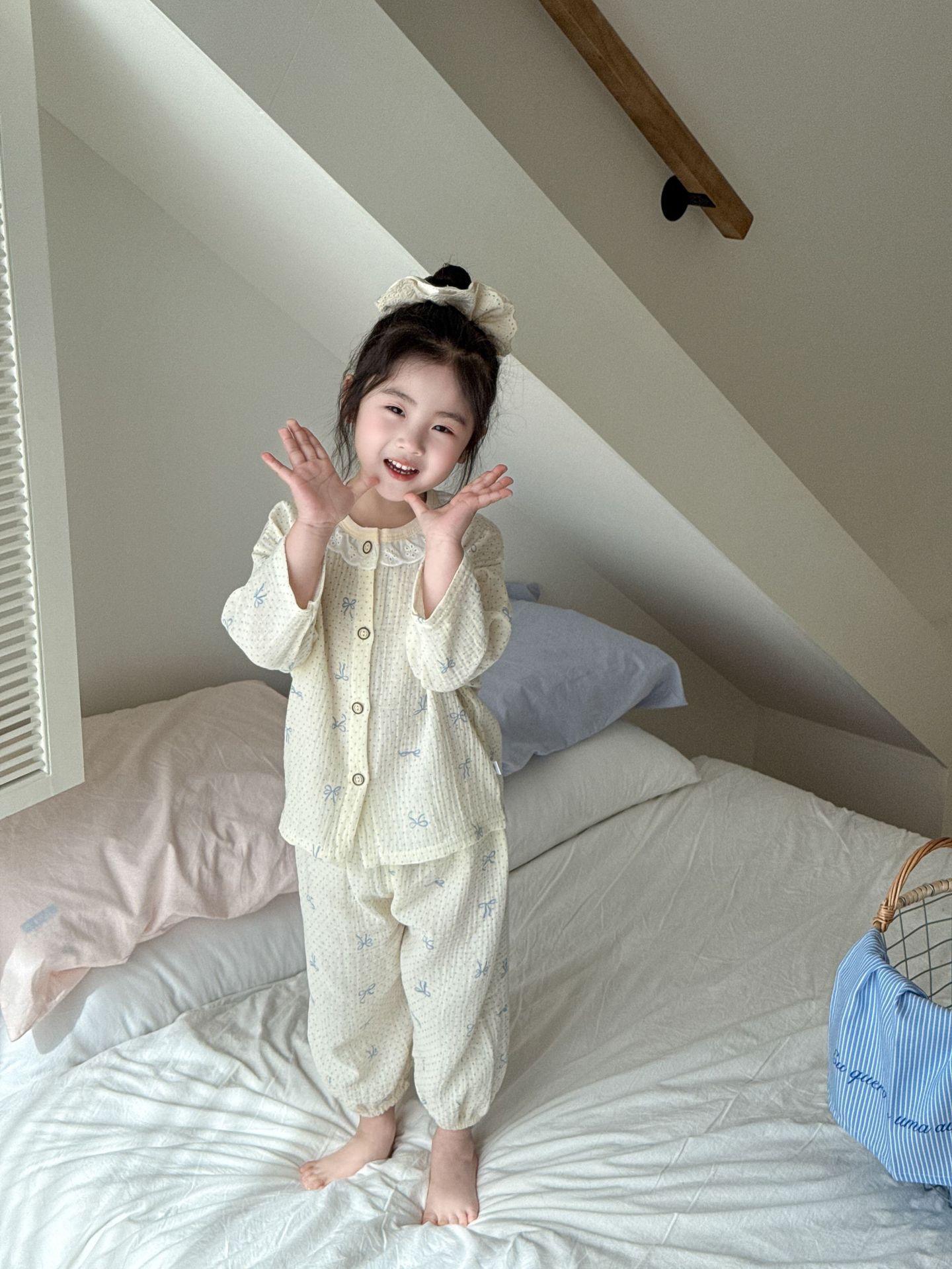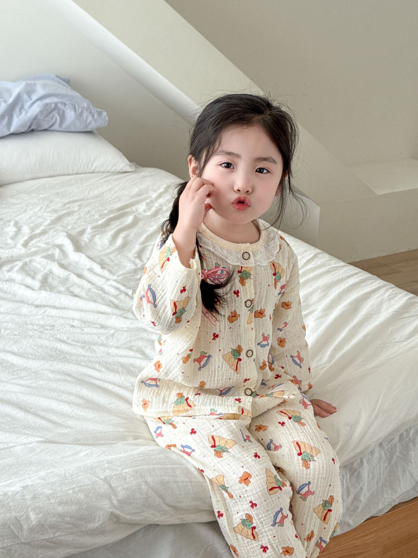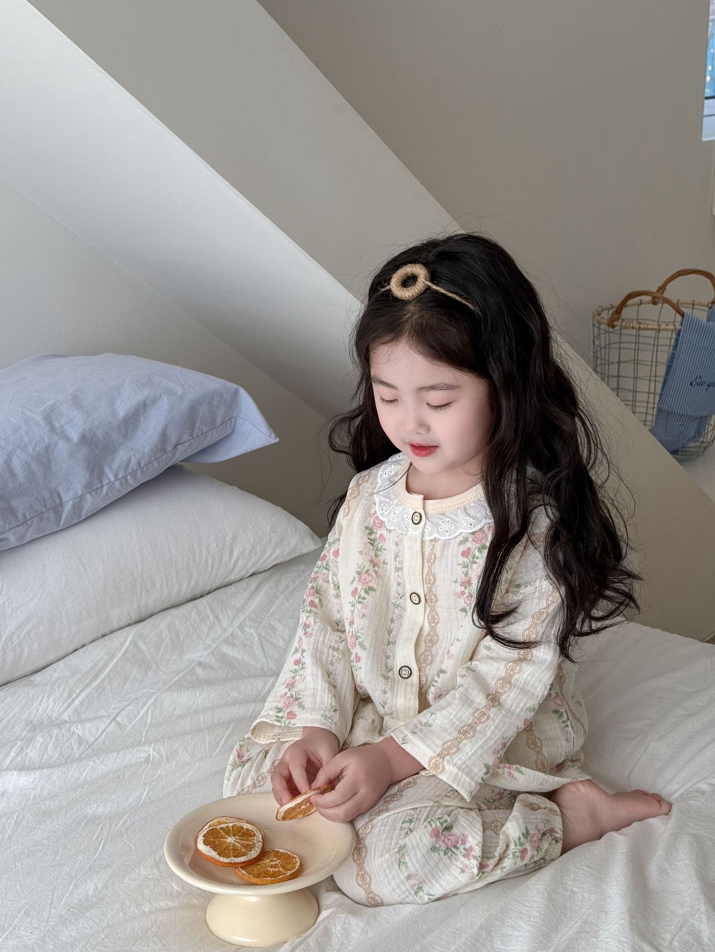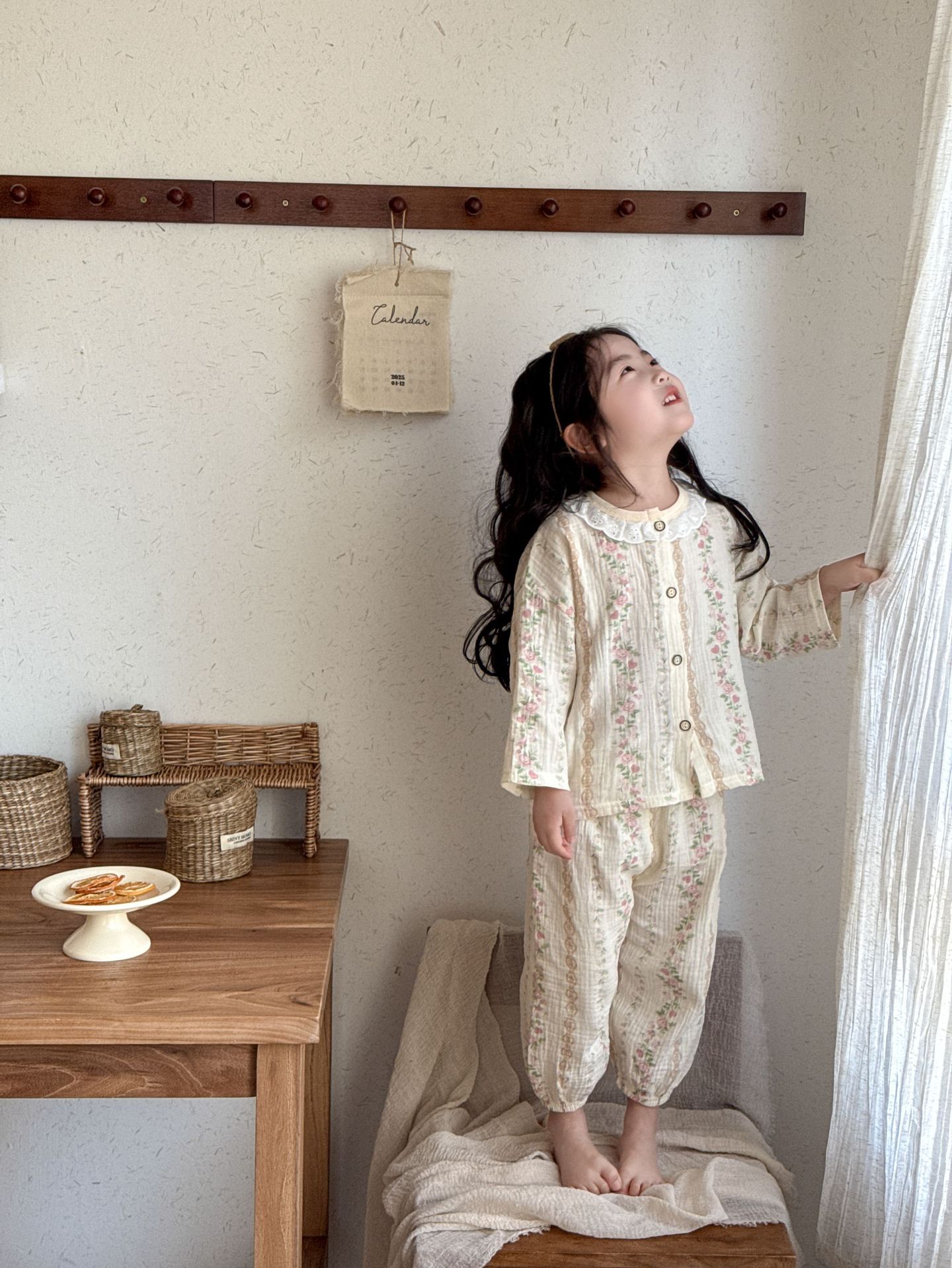 여자 2025 봄과 가을 새로운 어린이 에어컨 옷 순수 코튼 거즈 아기 봄과 여름 가정 옷 얇은 잠옷스토어 가기