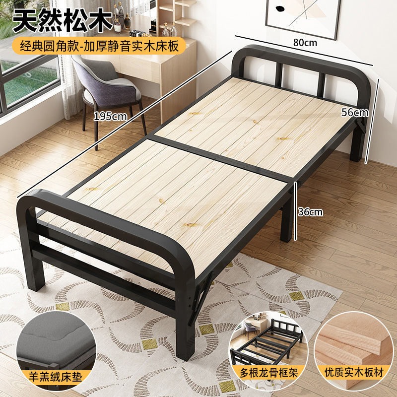 접이식 침대 원목 싱글 침대 가정용 철제 프레임 침대 성인 간이 낮잠 침대 임대실 1.2m 침대 소형 아파트스토어 가기