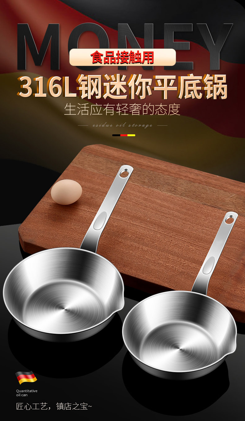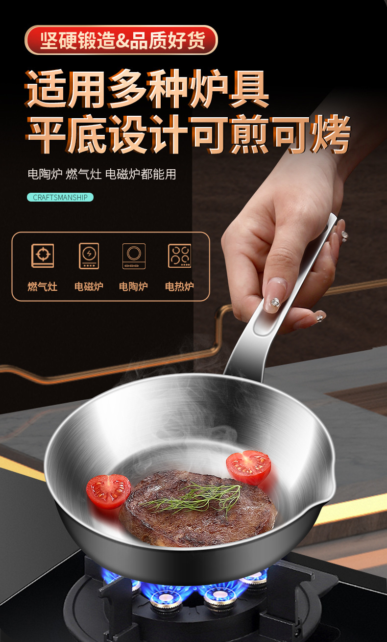 316 스테인레스 스틸 다층 바닥 프라이팬, 스토브 프라이팬 없음, 배수구가 있는 코팅되지 않은 오믈렛 팬, 미니 팬스토어 가기