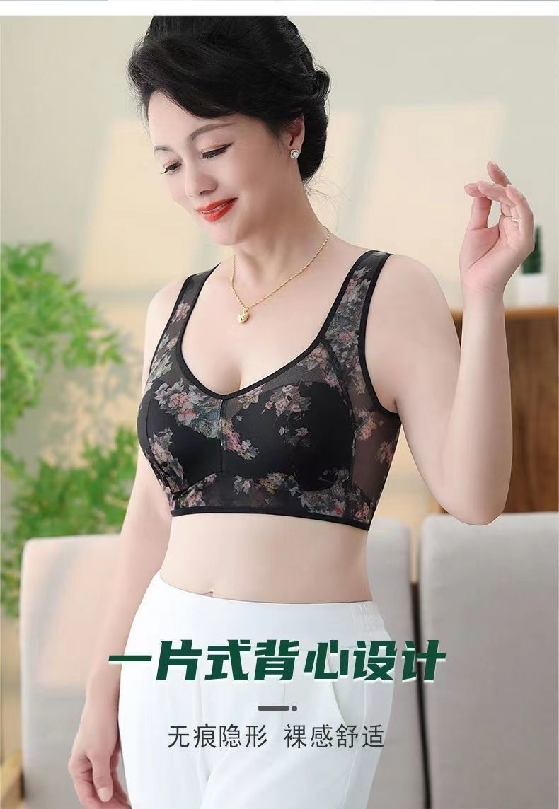 중노년층을 위한 버튼리스, 와이어프리, 빅사이즈 조끼형 브라, 조절 가능한 큰 가슴, 작은 엄마 스타일 프린트 속옷스토어 가기