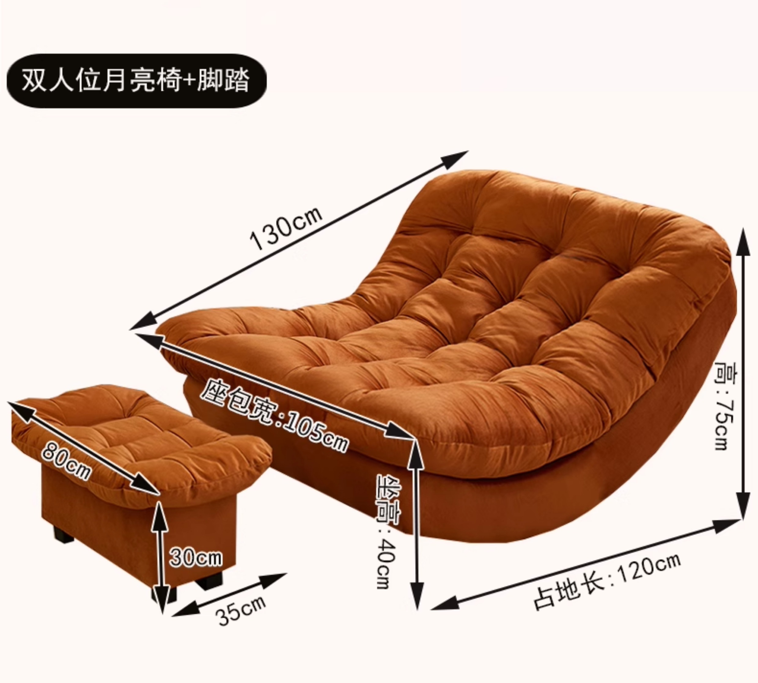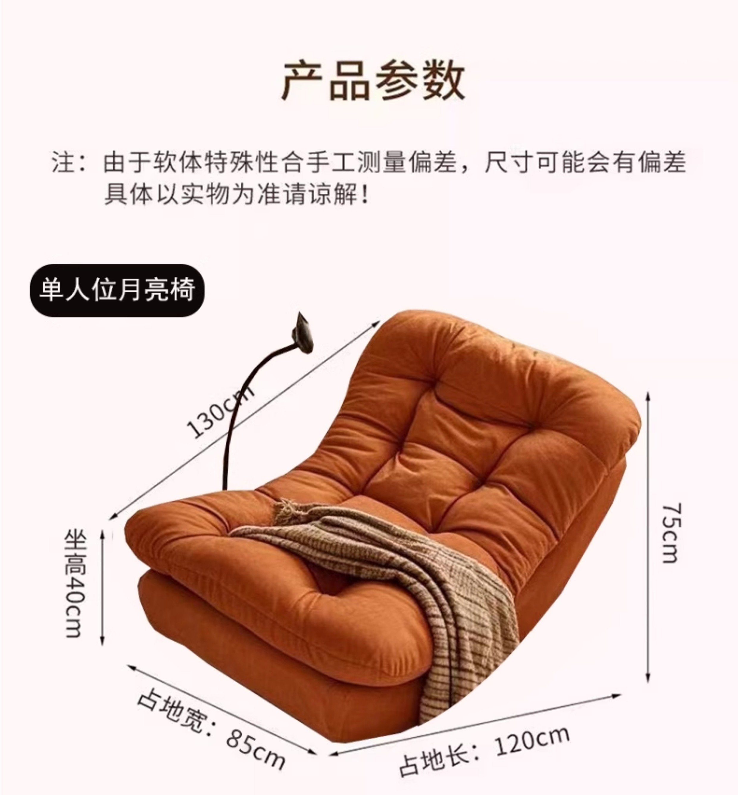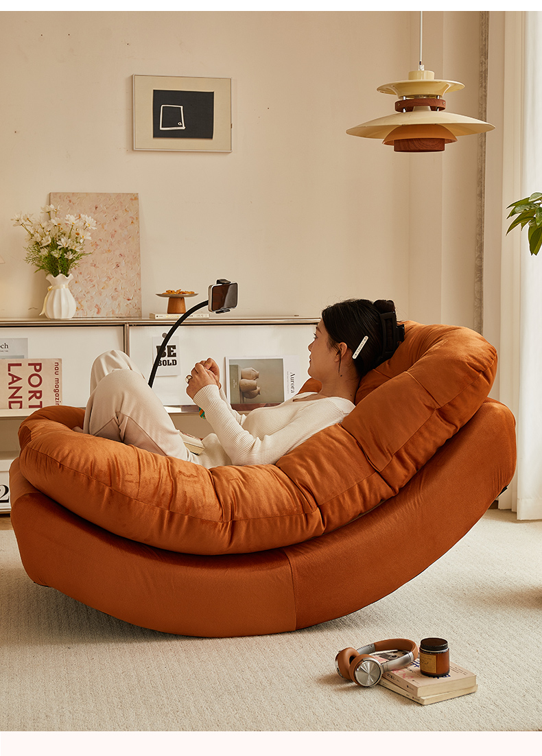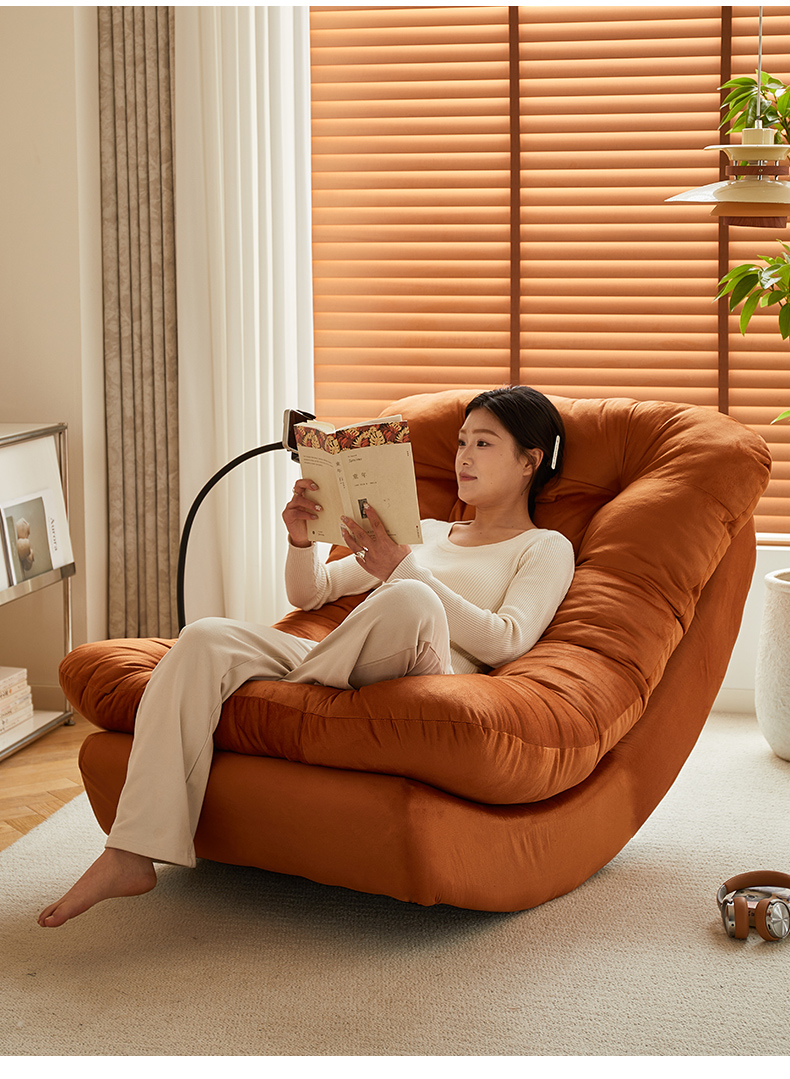 • 레저 라운지 의자 [오렌지 오렌지] 스웨이드 싱글 의자 + 발판 + 프리 카펫
