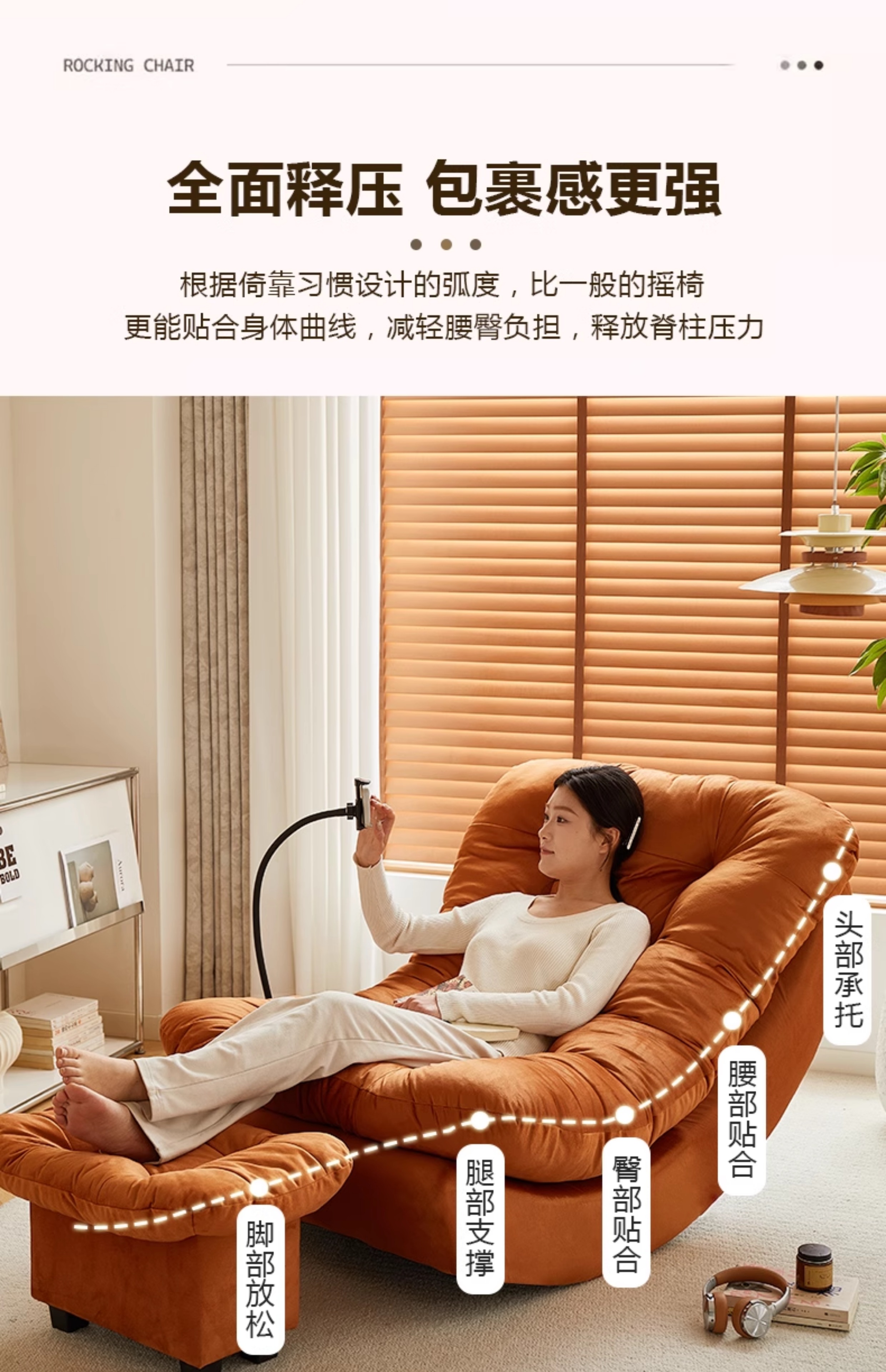 리클라이닝 및 수면이 가능한 게으른 소파, 레저 등받이 안락의자, 성인용 발코니 싱글 소파 의자, 인터넷 연예인 문 흔들의자스토어 가기