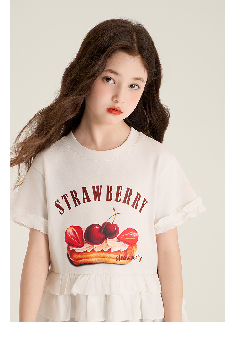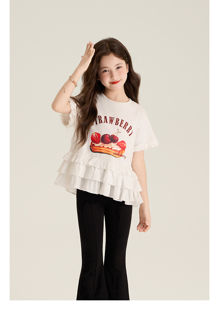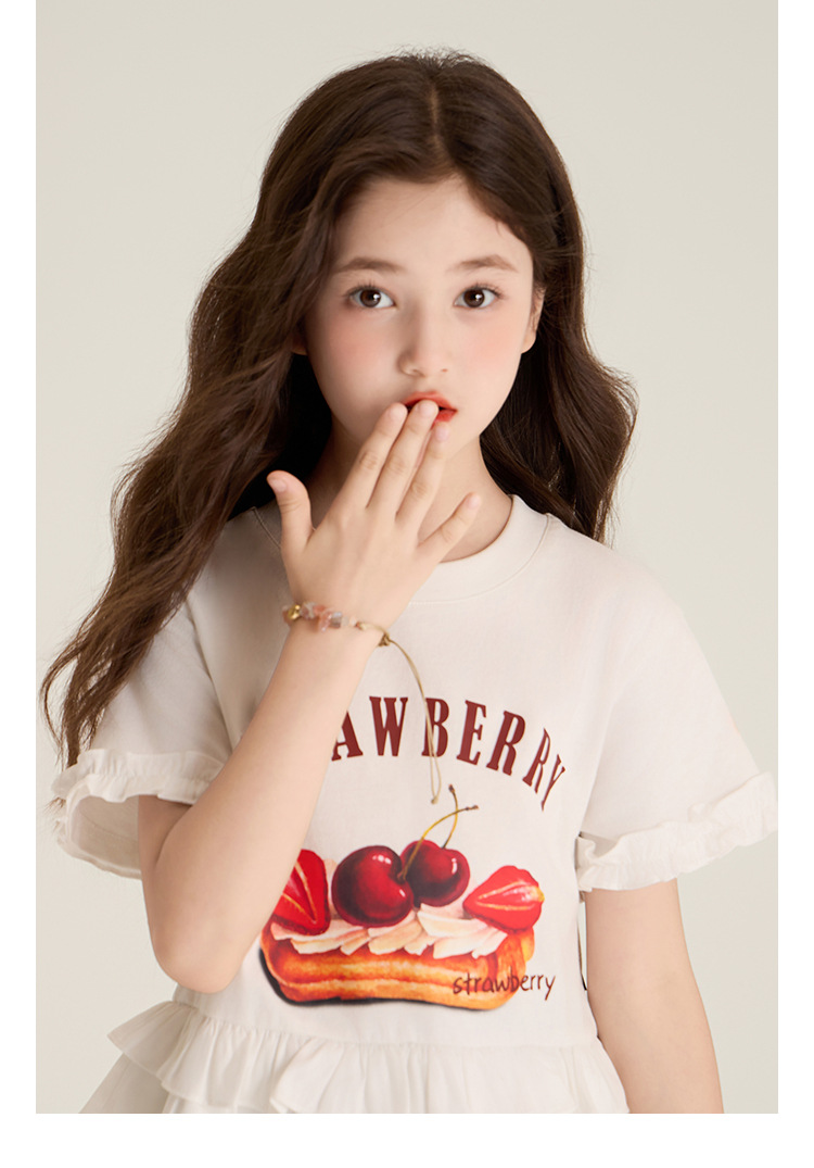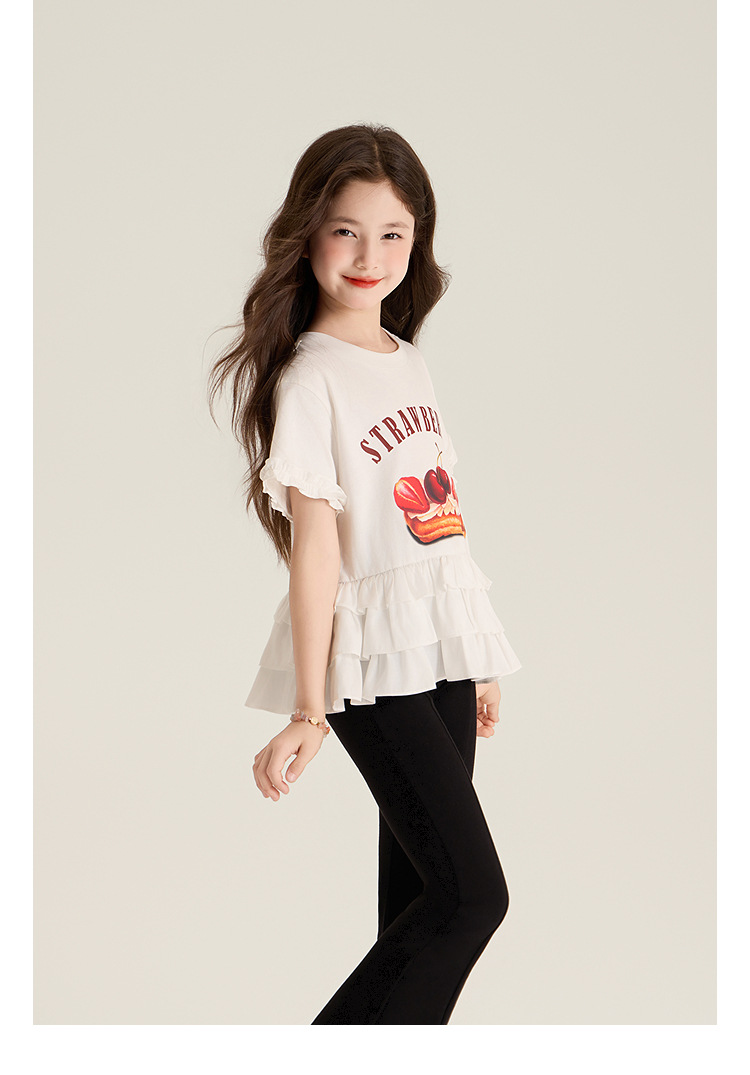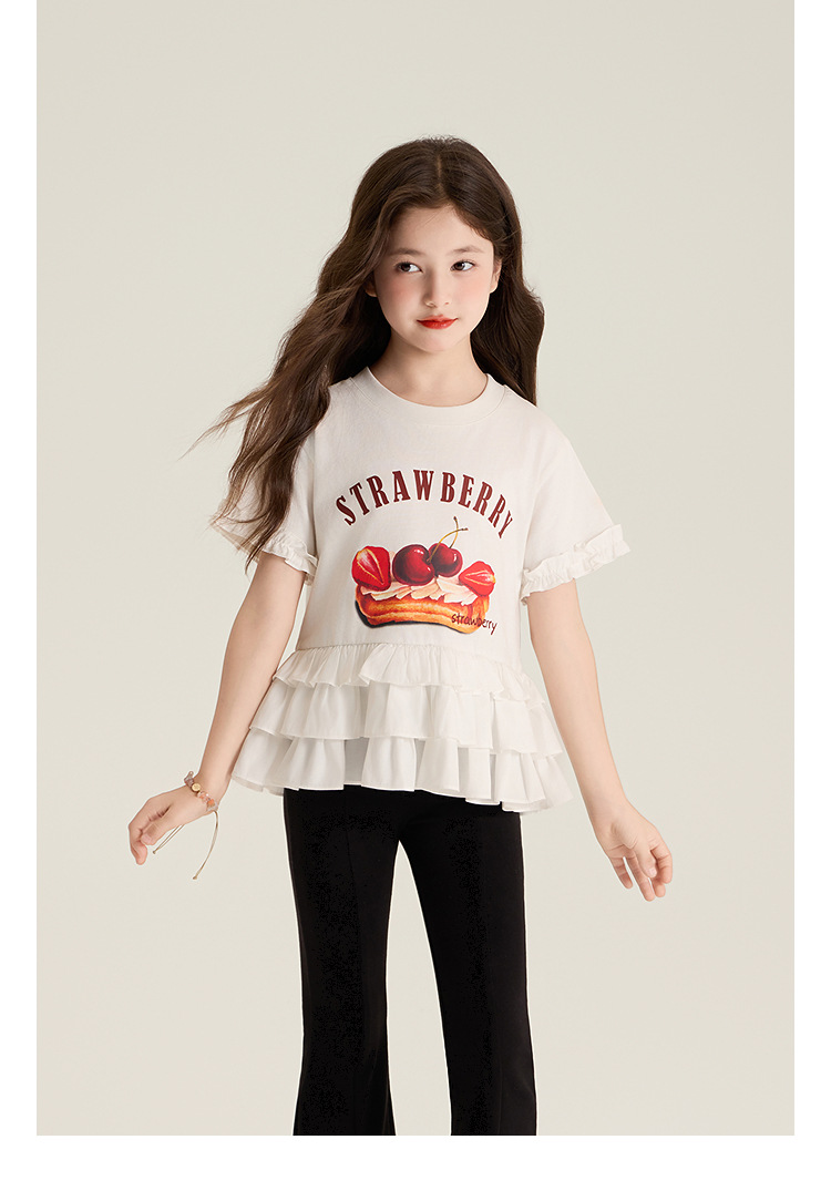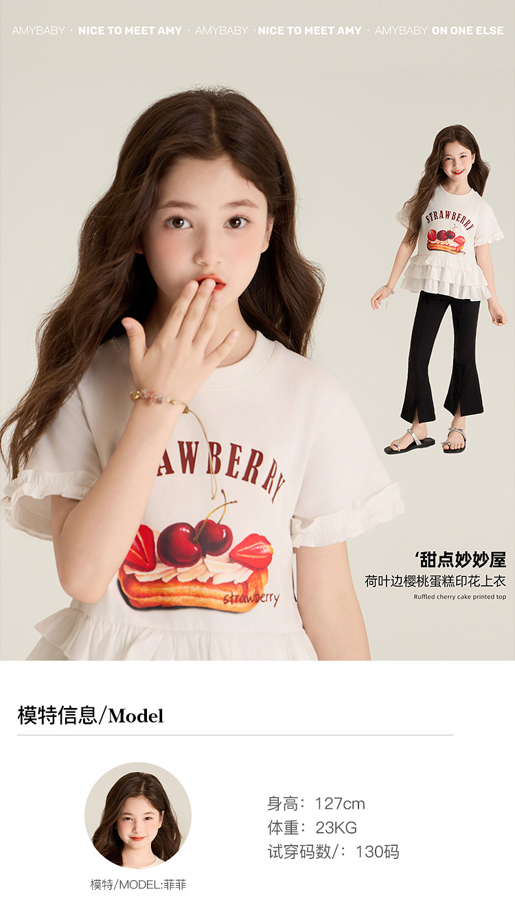Amybaby 여아 상의 여름 2025 새로운 스타일 슬림핏 만화 프린트 스플라이스 레이스 반소매스토어 가기