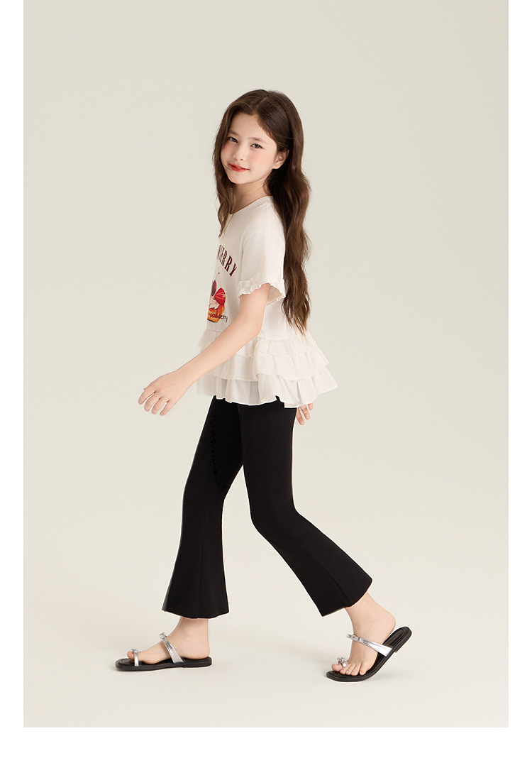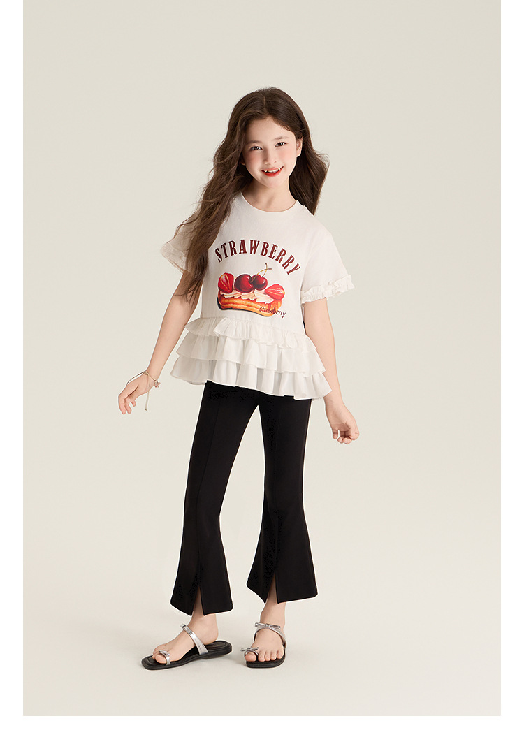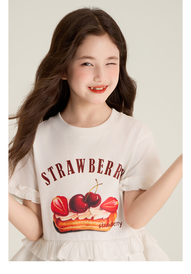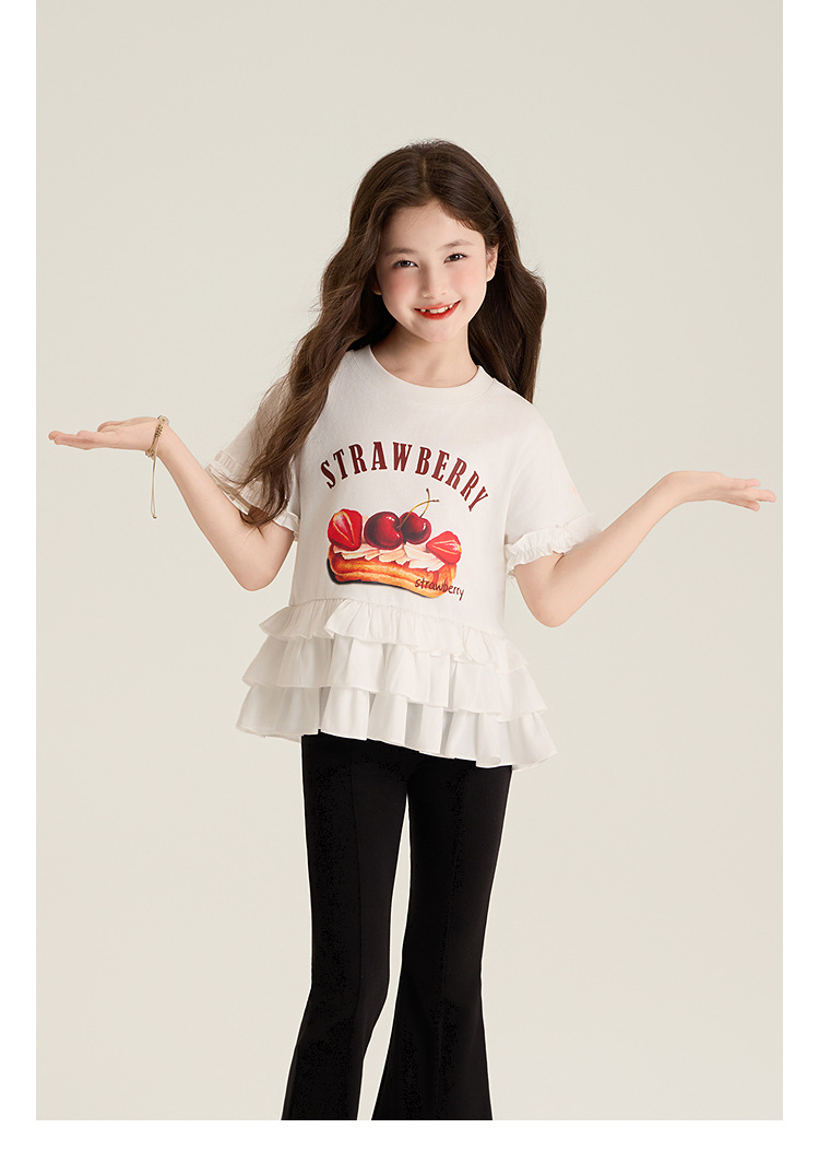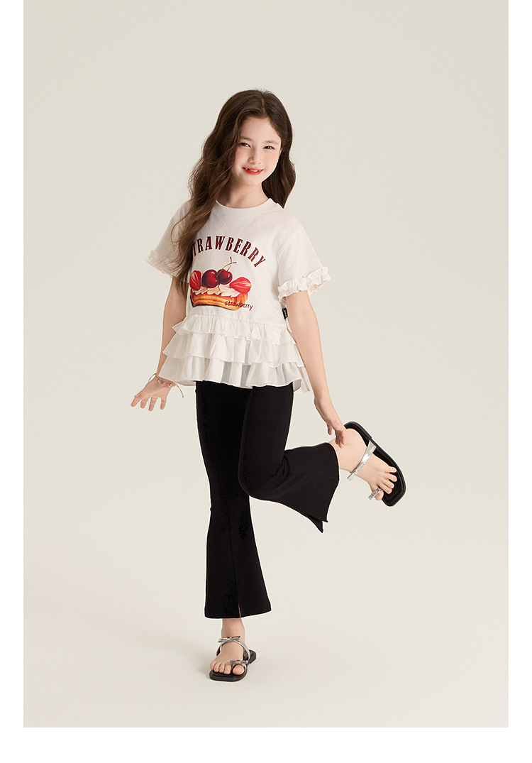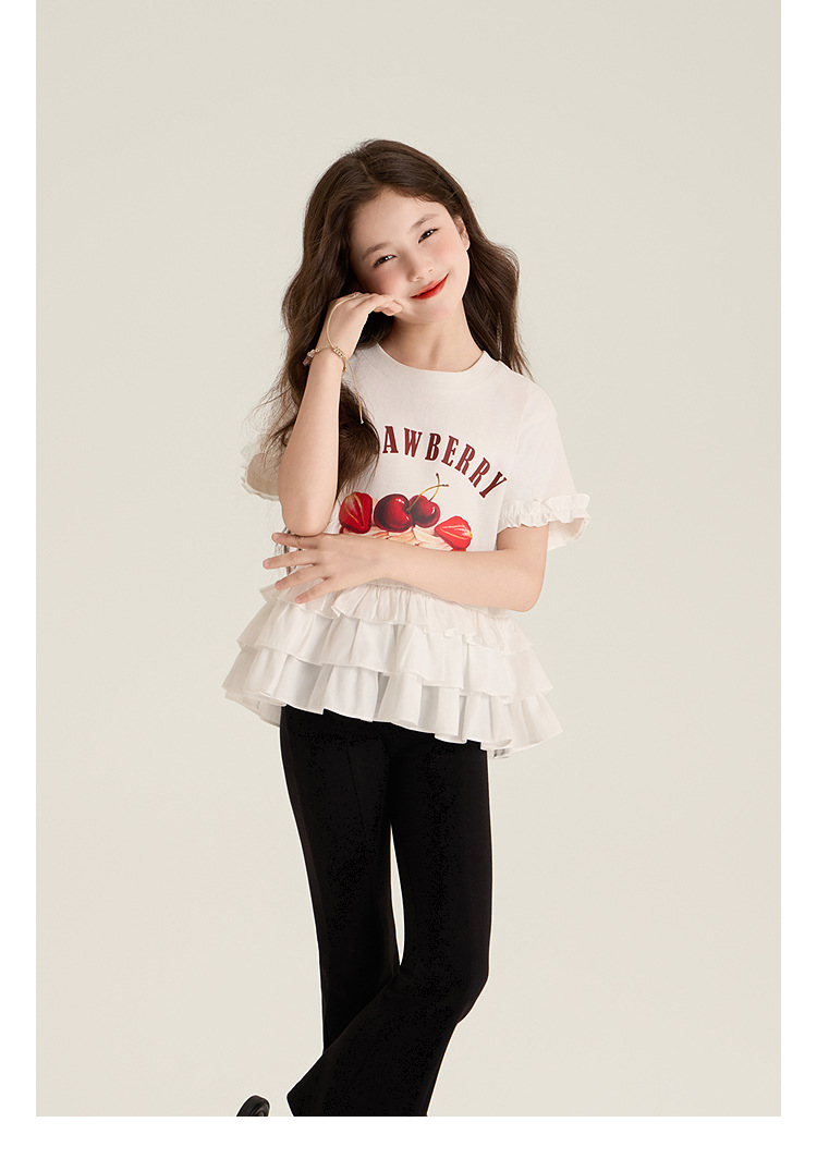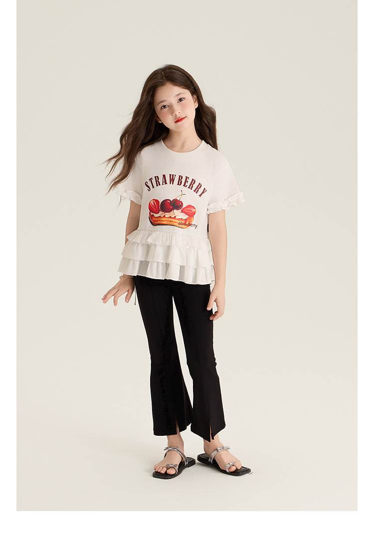 Amybaby 여아 상의 여름 2025 새로운 스타일 슬림핏 만화 프린트 스플라이스 레이스 반소매스토어 가기