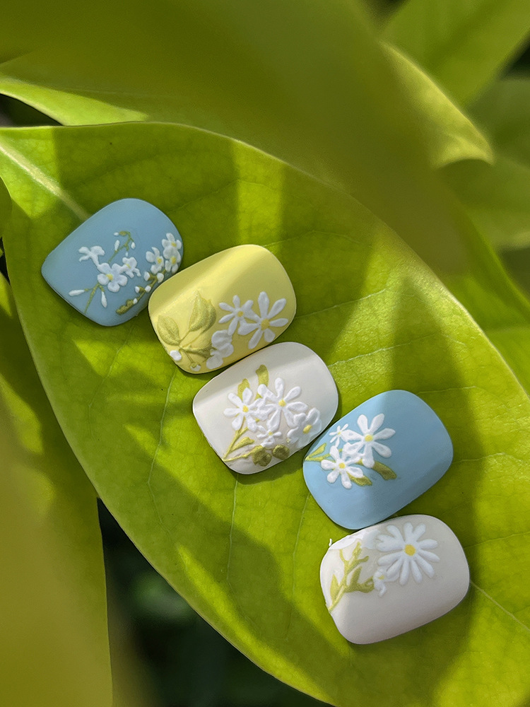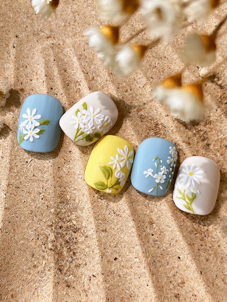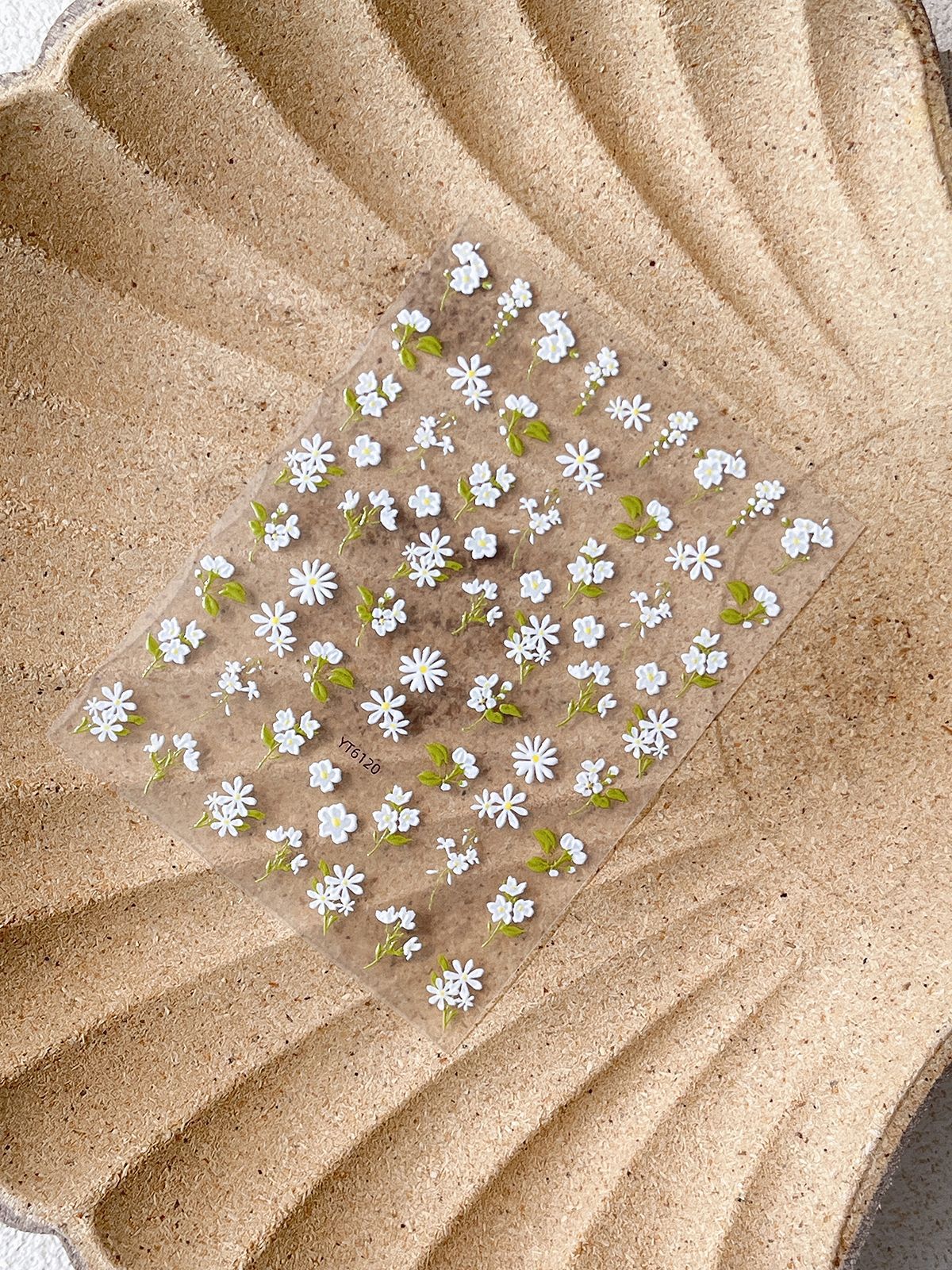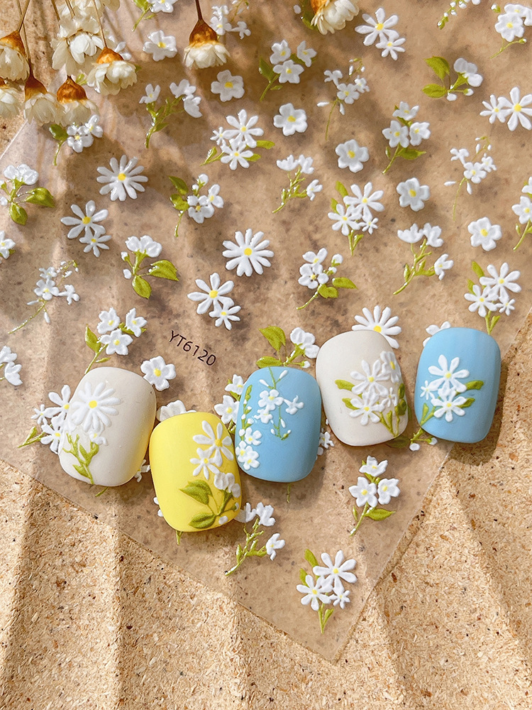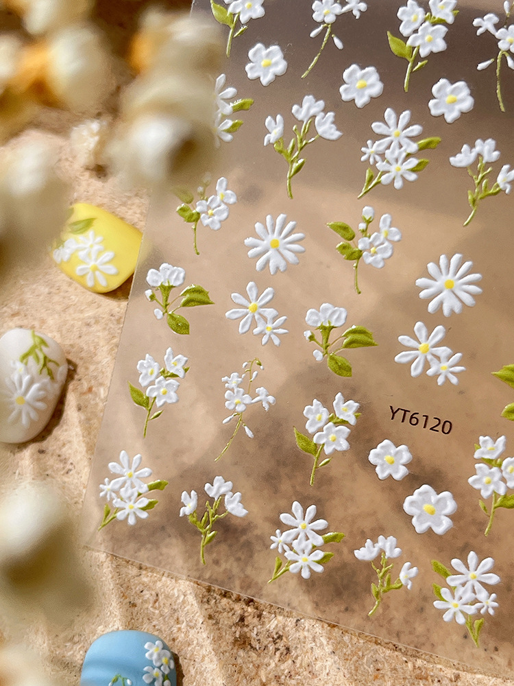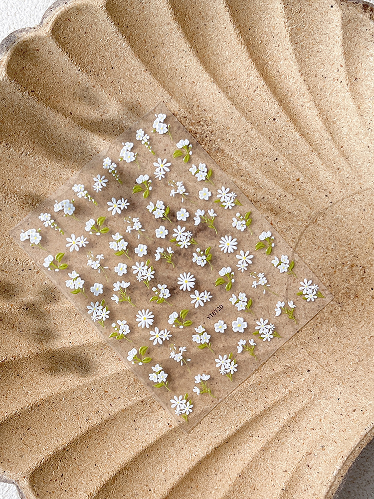 YITU 엘리베이티드 플라워 네일 아트 스티커 귀여운 심플 작은 신선한 흰색 꽃 장식 스티커 YT6120