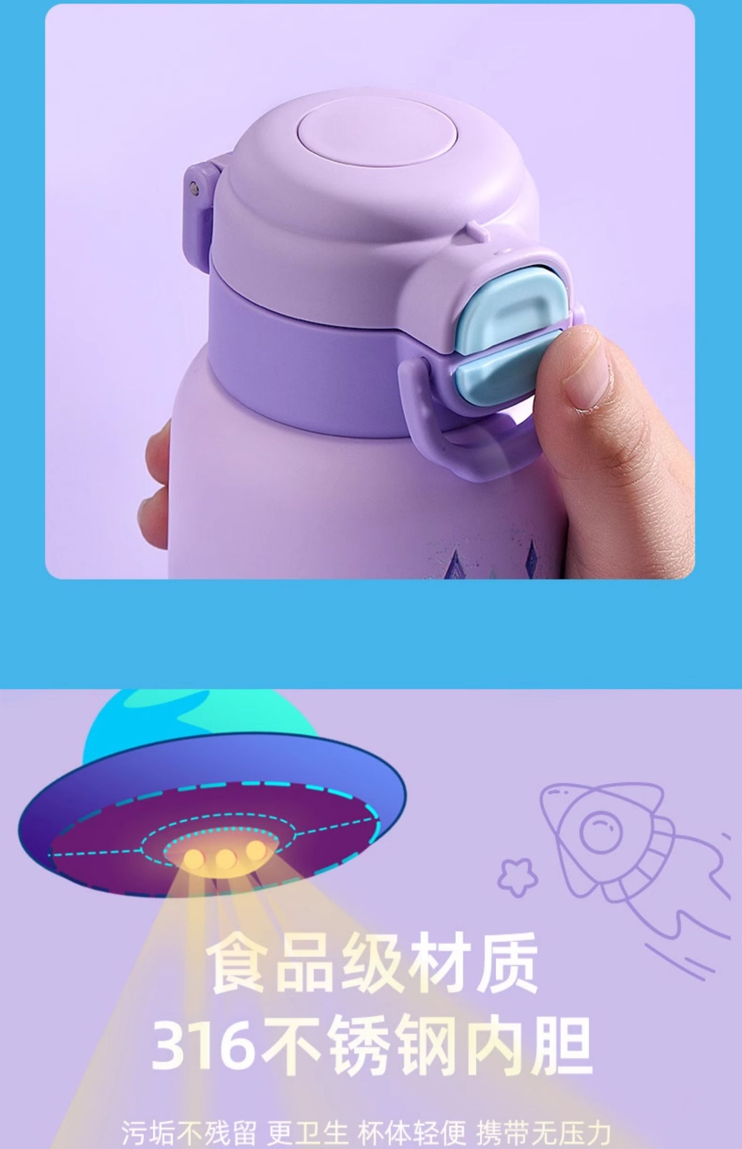 학교에 가는 소녀들을 위한 빨대가 있는 디즈니 어린이 보온병 컵 316 이중 음주구 유치원생 낙하 방지 휴대용