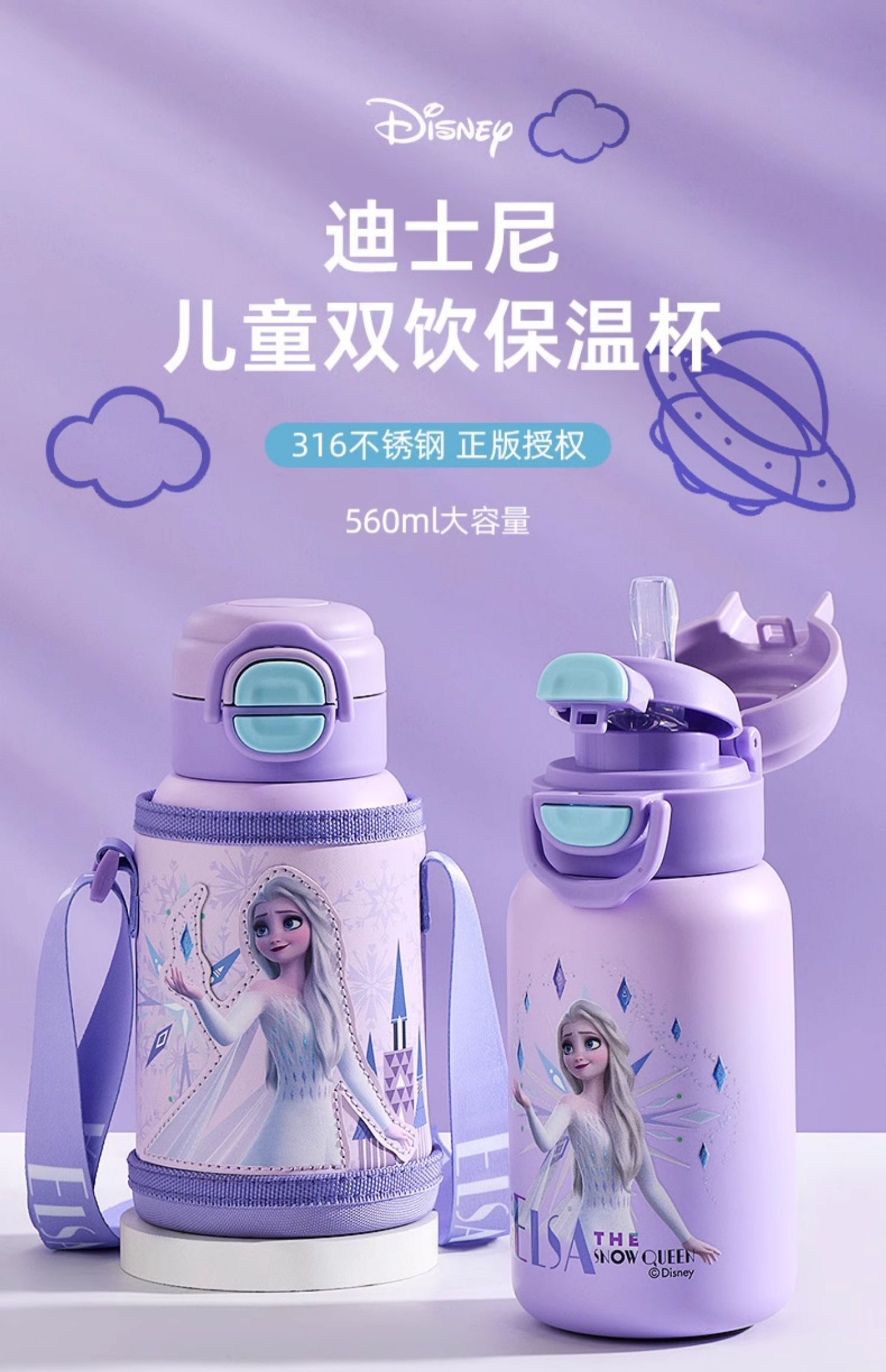 학교에 가는 소녀들을 위한 빨대가 있는 디즈니 어린이 보온병 컵 316 이중 음주구 유치원생 낙하 방지 휴대용스토어 가기