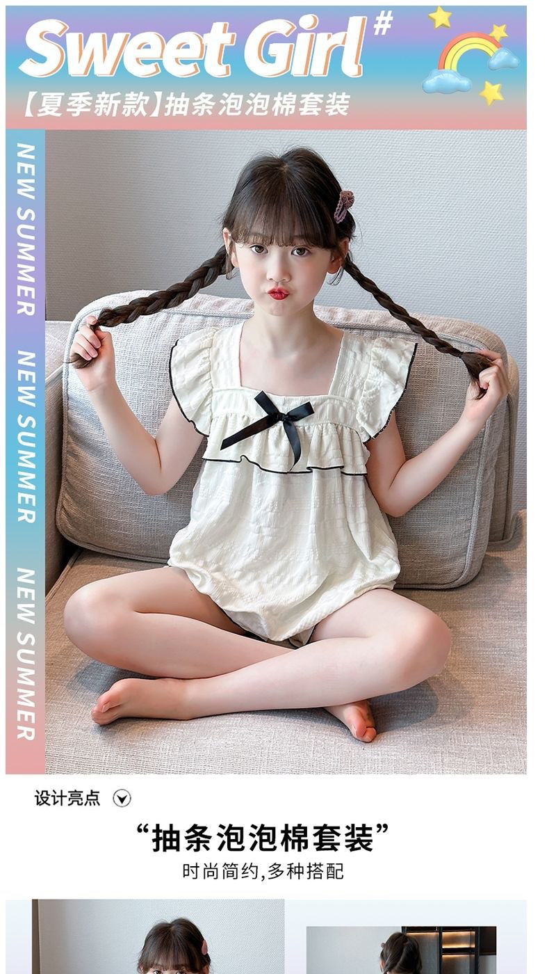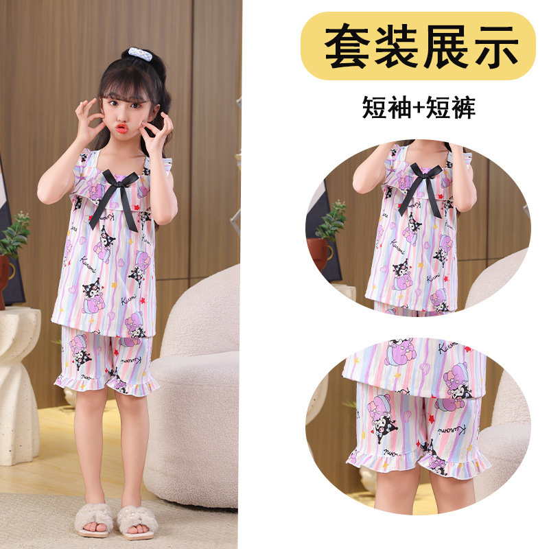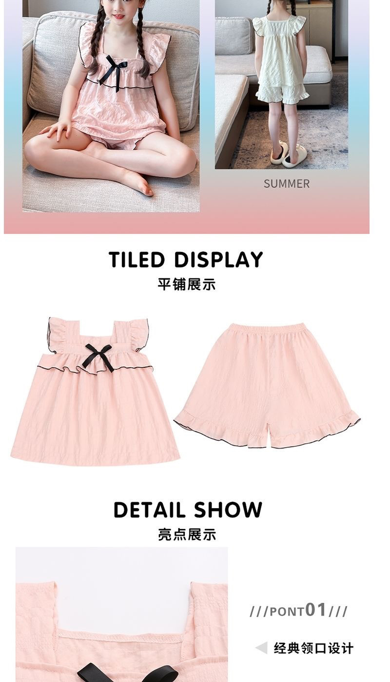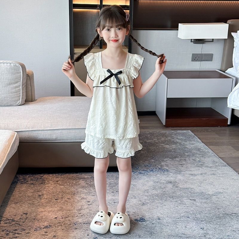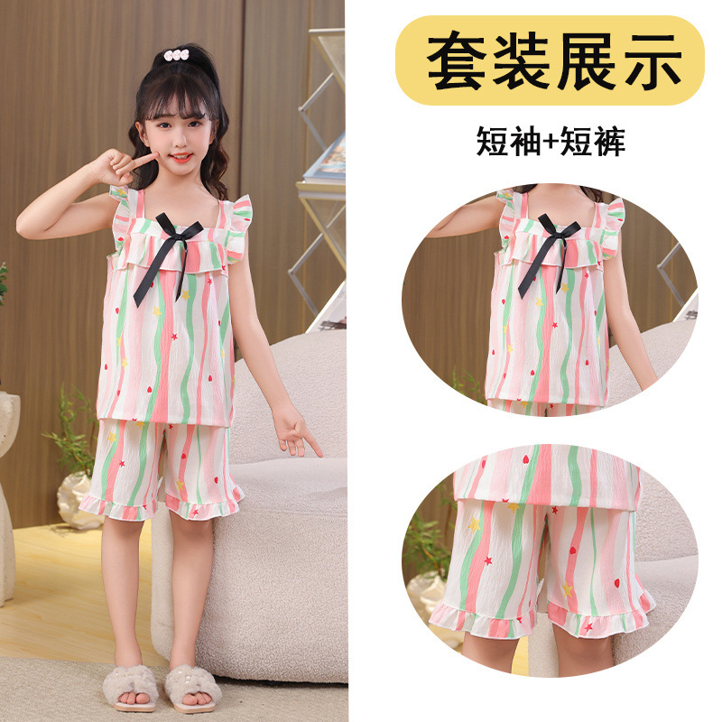 공주 스타일 어린이 잠옷 여성 여름 반팔 반바지 2025 새로운 달콤한 소녀 어린 소녀 가정 의류 세트스토어 가기