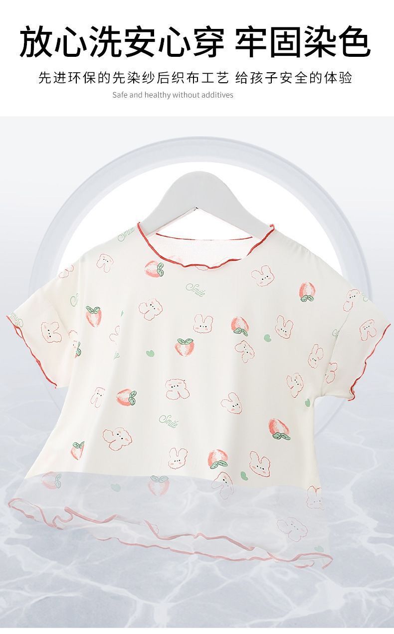 여아용 잠옷, 여름 얼음 실크 아동복, 여아용 인터넷 연예인 레이스 반팔 양복, 유아용 에어컨 옷, 침낭스토어 가기