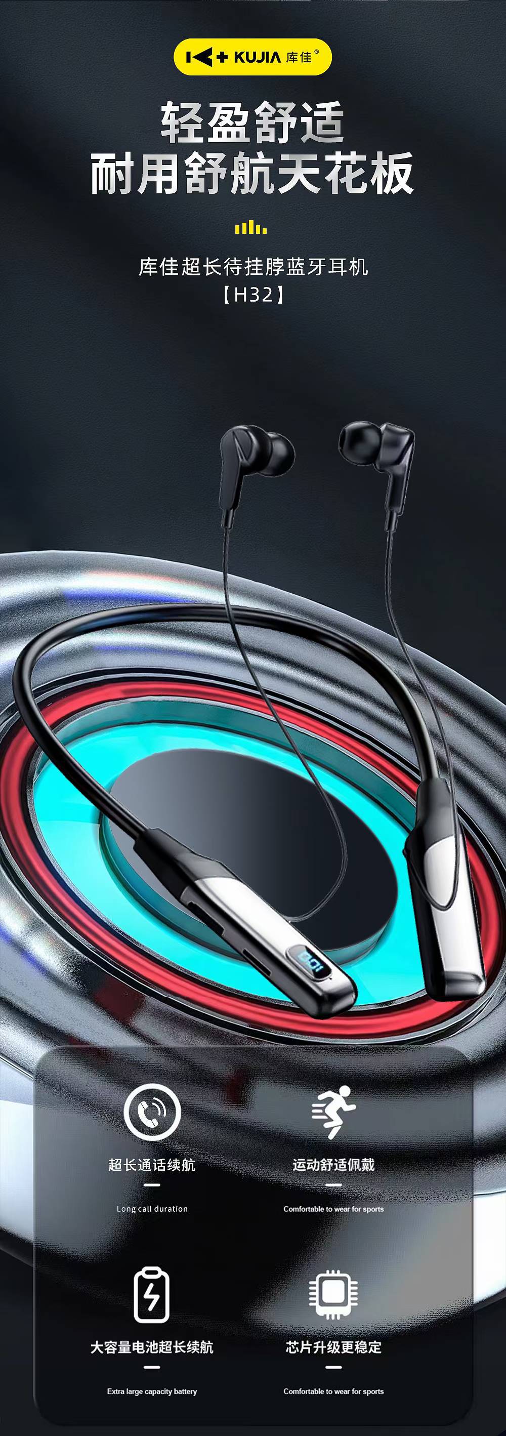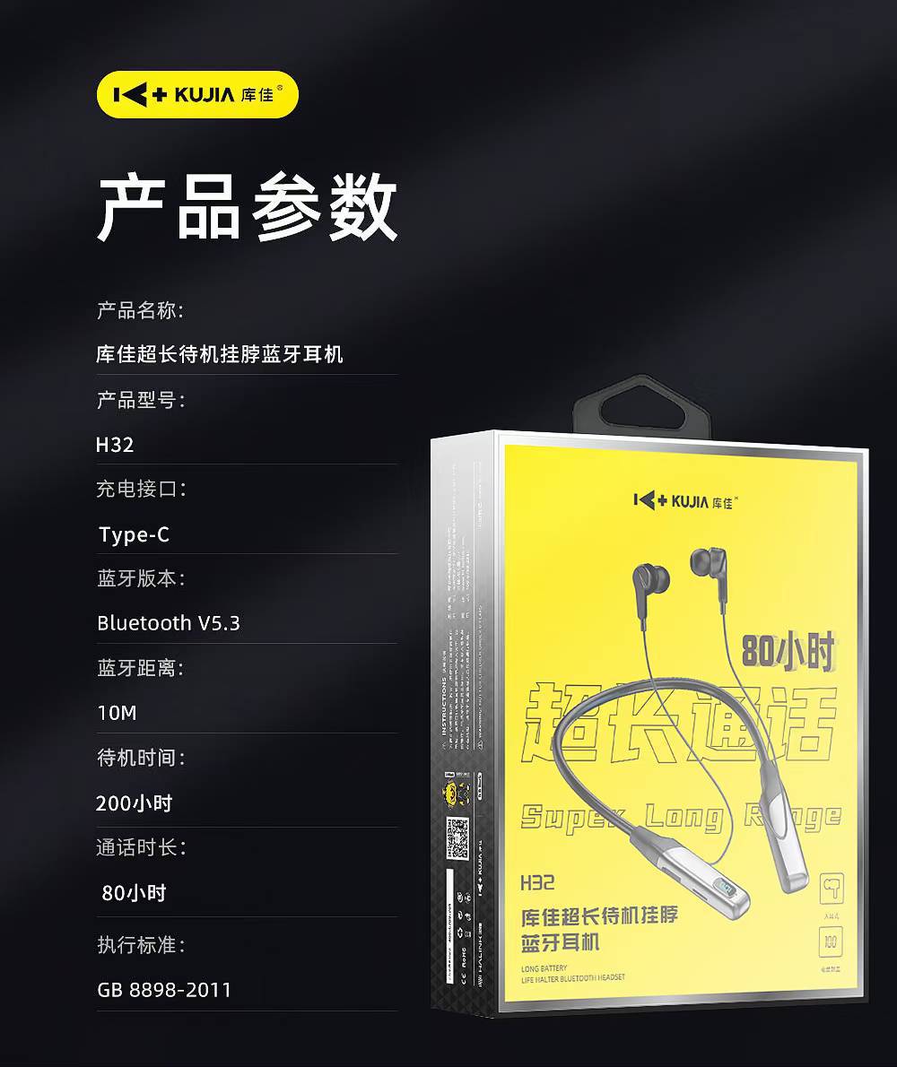 Type-C口充电,数显电量,通话,听歌,80小时