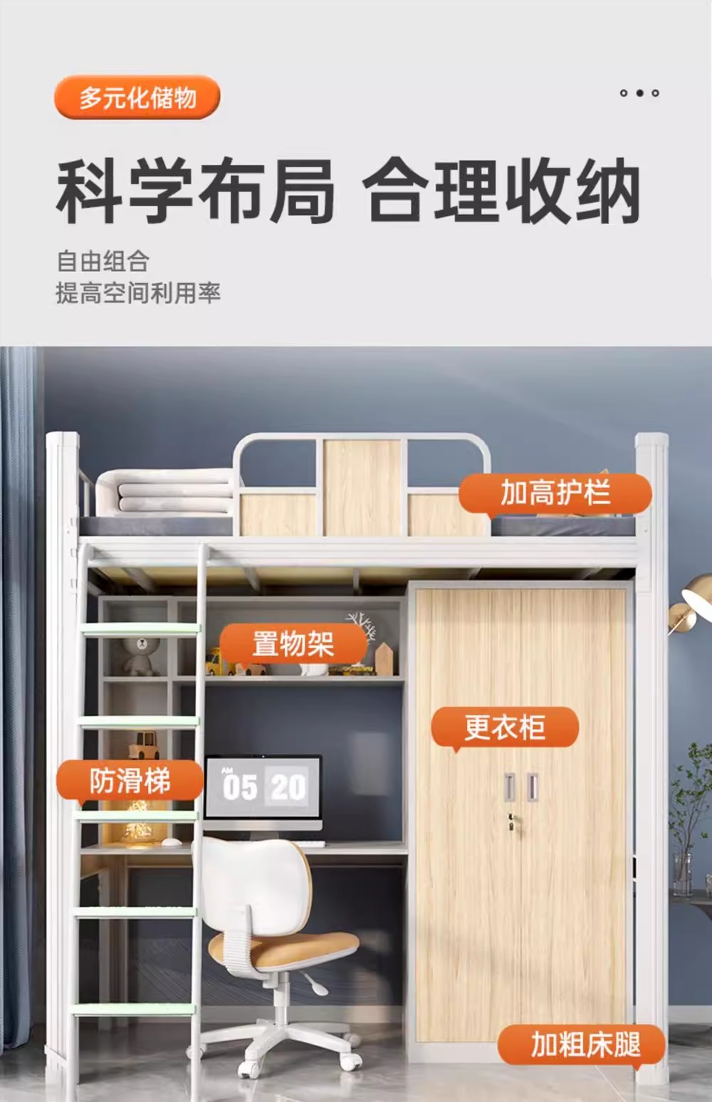 침대 학생 기숙사 침대 겸용 책상 이층 철제 침대 높낮이 조절 침대 철제 프레임 이층 침대스토어 가기