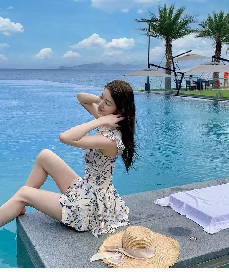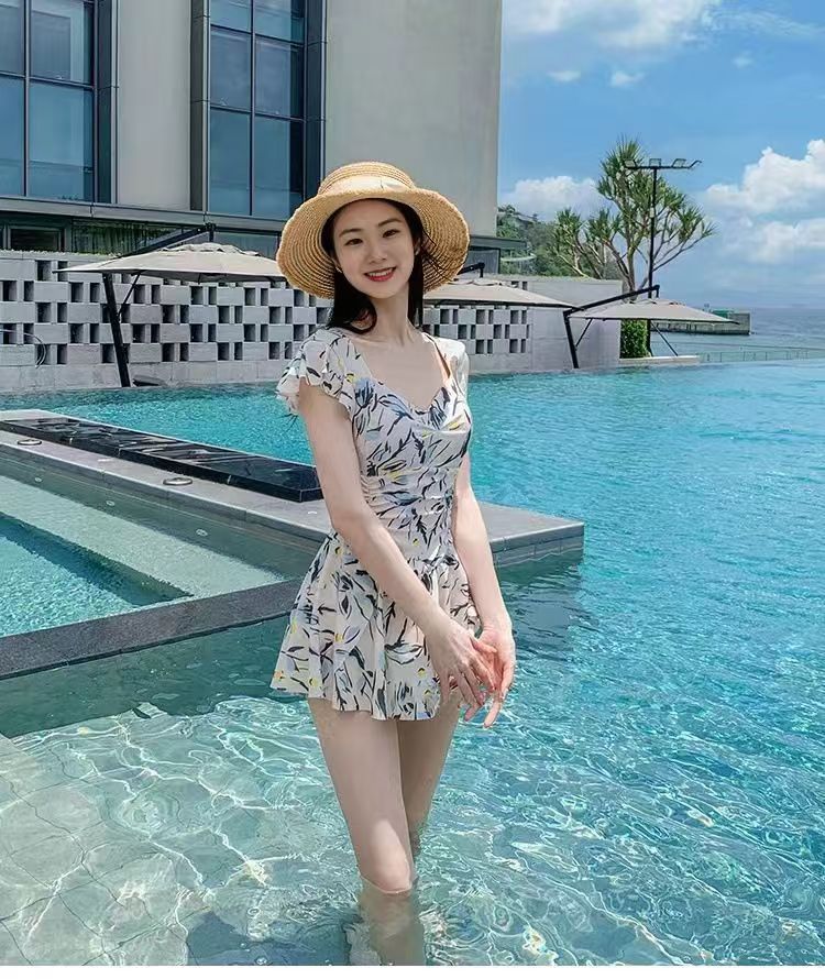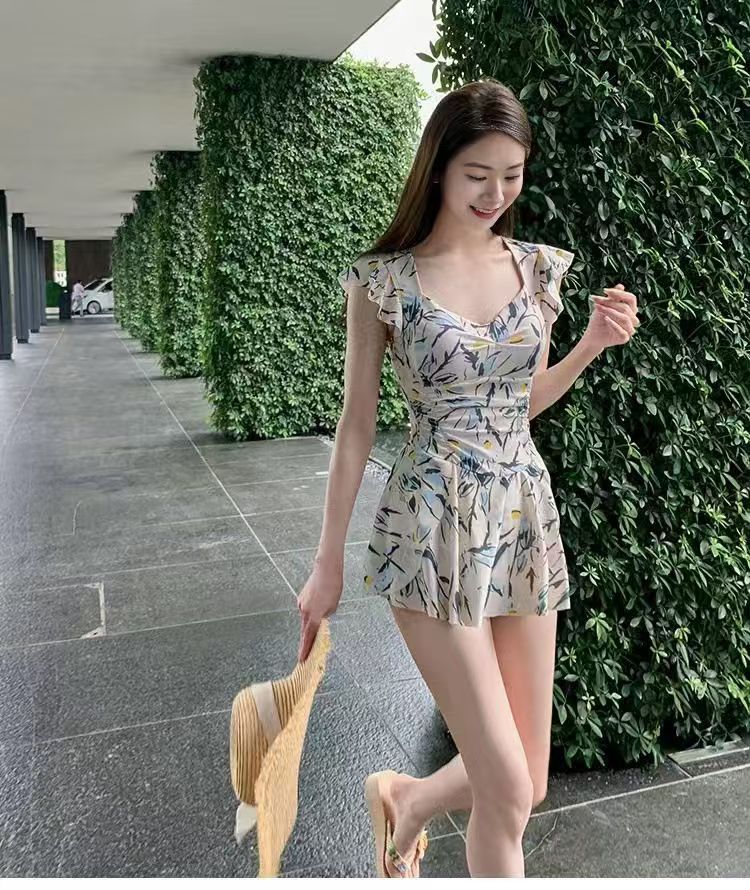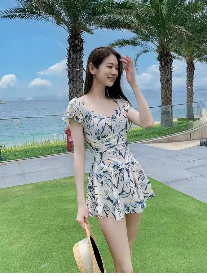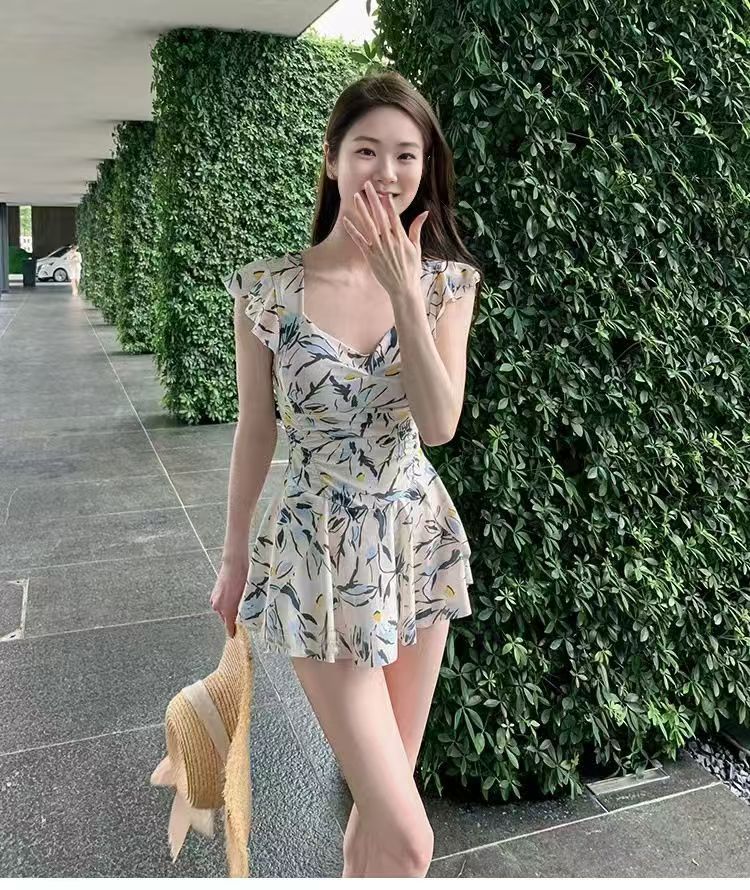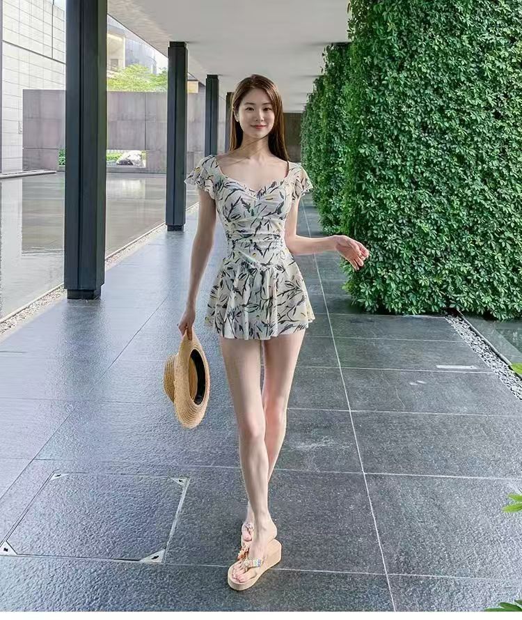 새로운 꽃무늬 반팔 스커트 원피스 여성 수영복 수영복 워터톤 903스토어 가기