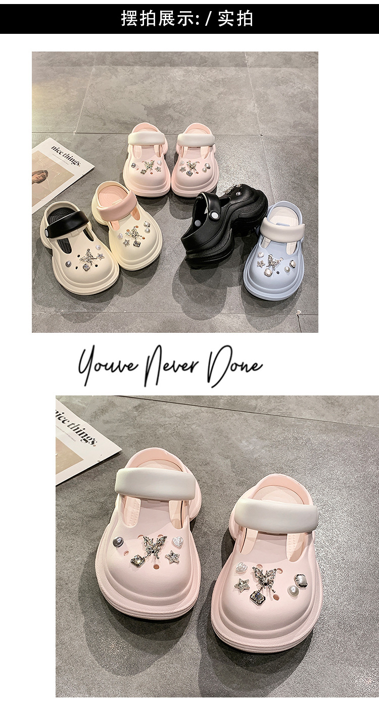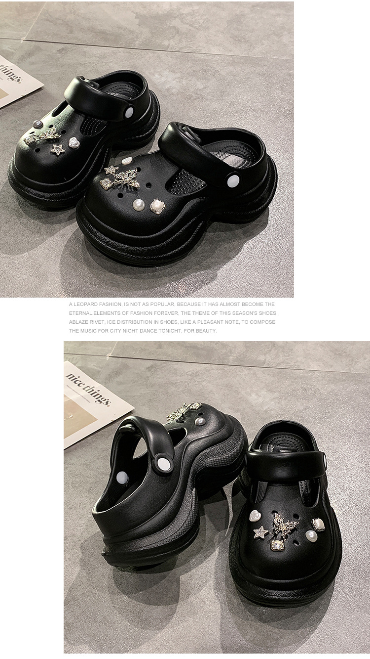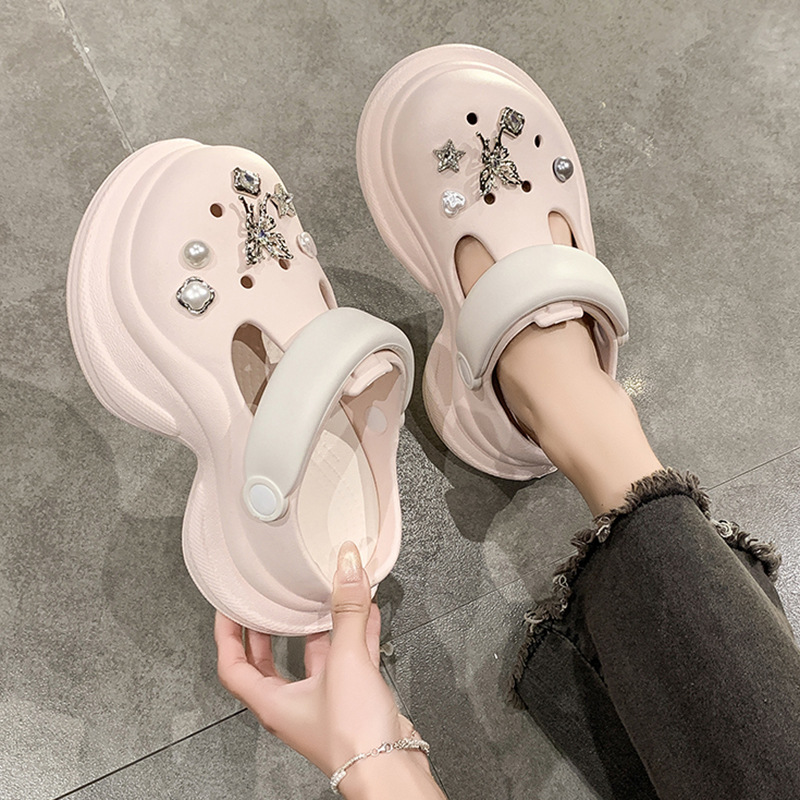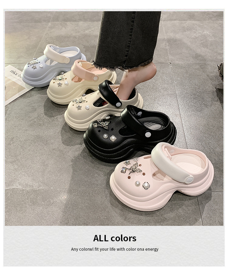 여성용 두꺼운 밑창 발가락 슬리퍼, 여성용 구멍 신발, 2025 새로운 장식 패션 슬리퍼, 여성용 여름 아우터웨어, 다용도 슬리퍼스토어 가기